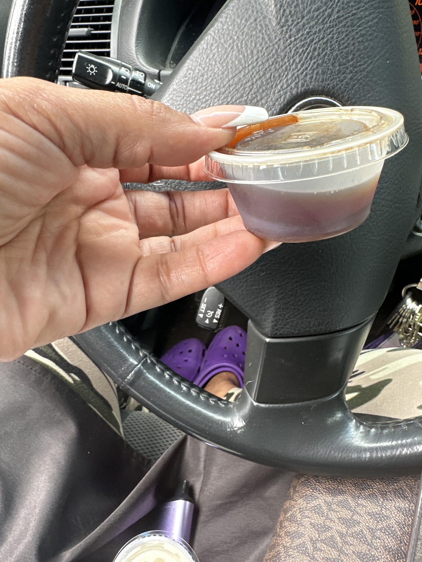 I put my husband on the phone and my husband compromised with him that since we cannot get the money back, to make us a fresh order of the food and we will come pick it up. My husband gets the food and the manager hands him a fresh order and the old order.