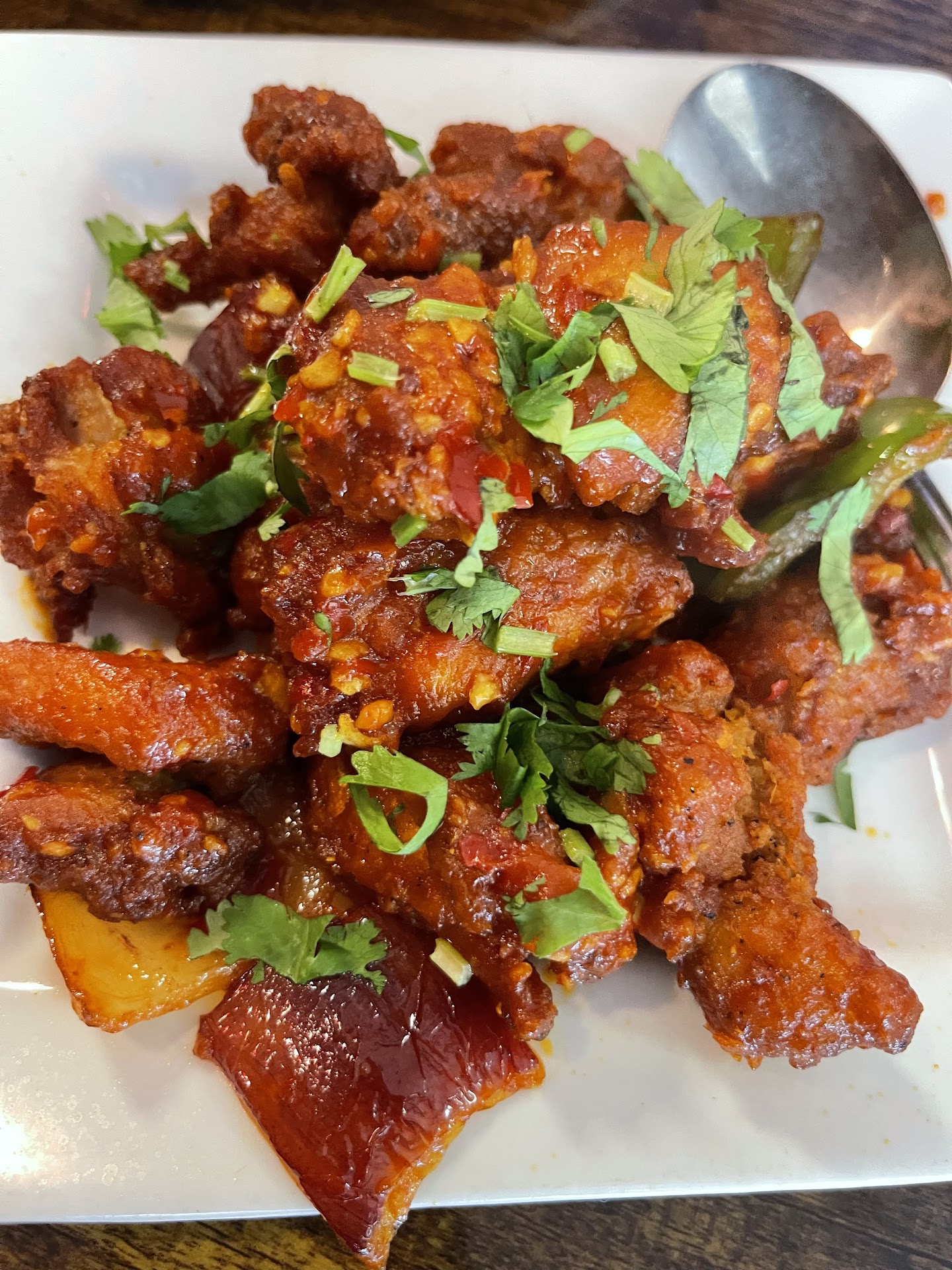 Hands down, this spot is my absolute favorite place for incredible Nepali cuisine in the Triangle. The service here is incredible every time we go; our cups are always filled with their delicious house-made complimentary, sweet yet spiced, Nepali black tea (I love this tea so much that I have to ask for a refill to go), the waiter always has amazing suggestions for dishes depending on our mood, plus every dish I have at Himalayan Nepali Cuisine is phenomenal. Our Chili Chicken appetizer (spice level 3 out of 7) is my new obsession. The chicken bites are fried to perfection and tossed in a chili pepper based sauce with peppers and onion (OMG so good).