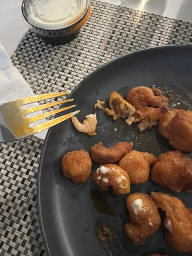 What is this? We ordered to go pizza & buffalo shrimp & wings yesterday & this is their buffalo shrimp. The tiniest shrimp they could find & heavily breaded to hide the fact that it's all breading. So disappointed because we used to really like this place. Update: At first I was impressed with how quick the owner responded & seems genuinely sorry & wanting to correct the issue. After I contacted them & thanked them for acknowledging this issue, they said that the improvement on shrimp has already been implemented & let them know when we want to order again. I did contact them again before we ordered & they did not respond- no big deal, we ordered anyway. To my disappointment, the buffalo shrimp is exactly the same ; tiny, heavily breaded . FYI- there was no refund or compensation ever received.