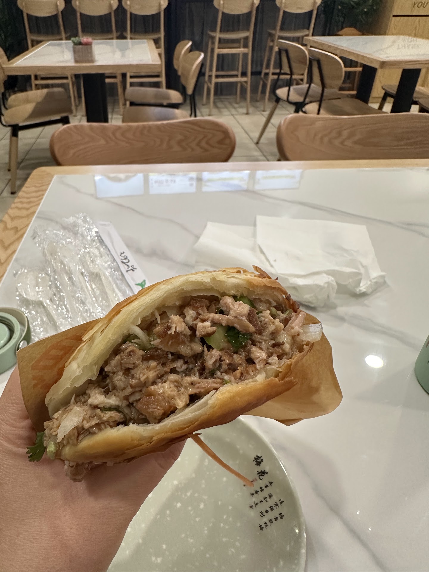 Pros: The roujiamo ("Chinese hamburger") was good, though not really what you'd get in most of Xi'an (more on that below). The youpomian ("Hot oil noodles") had a lot of pepper when most places wouldn't make it spicy enough. Local and not a chain. Bringing an underserved style of Chinese food to the market (most people know Sichuan or Guangdong/Cantonese style of food, but not Shaanxi).