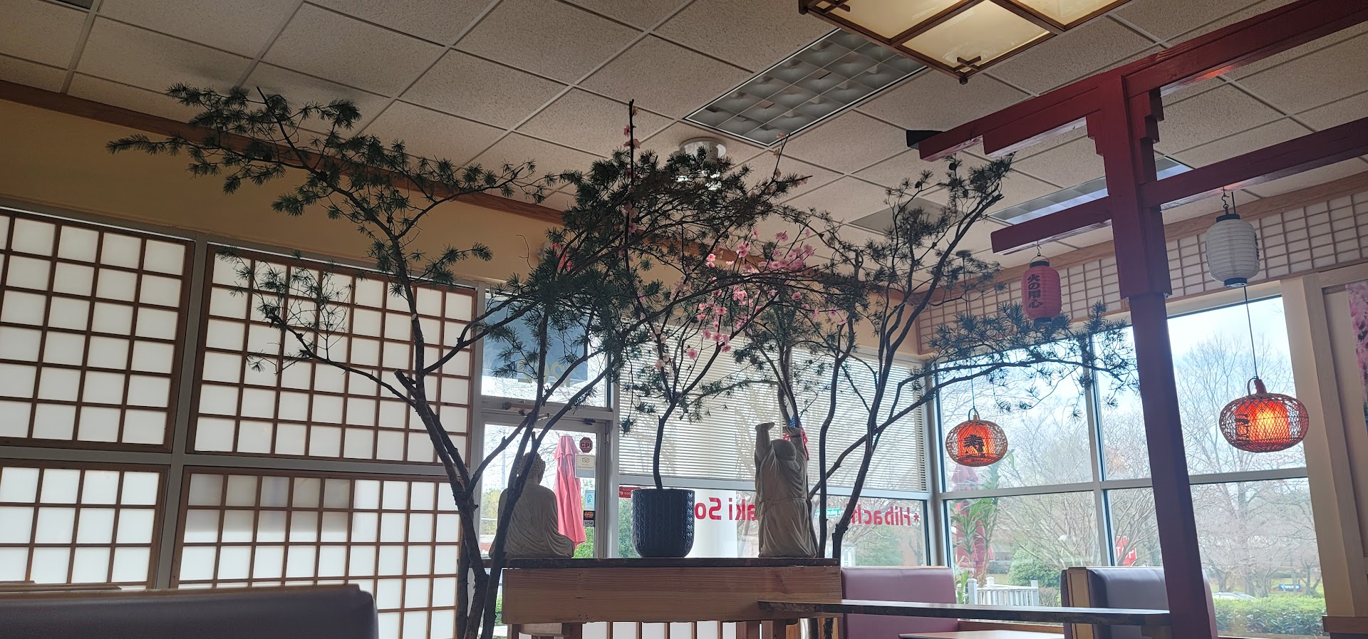 When we entered and we both were blown away by the decor. The dining area was clean, organized, and looked amazing. Plants, statues, and a torii gate pulls the space together in a way only Japanese decorations can.