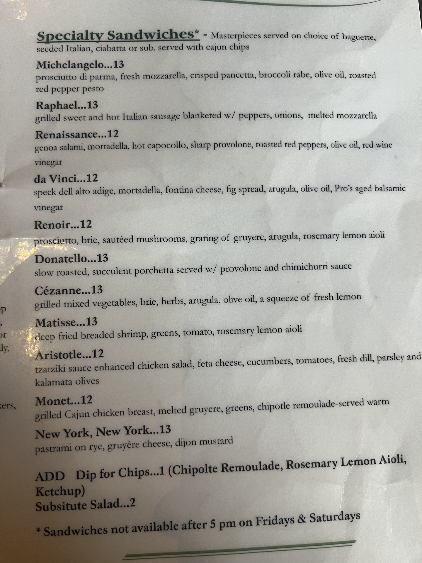 Read moreThis place has some issues. I ordered take out and the wait was a little longer than I was hoping...but when I got in the car I realized that 2 of the 4 deserts were missing. I went back and got them but then...when I got home I realized the soup I ordered -and paid for - was not there...so six bucks down the drain. Here is an overview of the food: Sausage Pie....was it microwaved? One side was very hard, sausage a bit salty. Other than the very hard parts that crumbled when cut it was ok...but pricey for the size of the portion and taste. Quiche Lorraine...beautiful. Light perfectly seasoned, awesome crust. a bit pricey, but it was very good. I would eat this again. Crepe, mushroom/cheese sauce...it was very good as well, I would hold the tarragon on top in the future...it didn't add anything and was a bit strong tasting. Price for this was OK, would eat this again. Soup - Gumbo - wouldn't know...it was missing....pricey! Napoleon - eh. Very sweet, cream very oily. Tastes like food service food. At $6...not worth the price. Apple Pastry - mixed. The apple part was great, but the 'pastry' shell looked and tasted like a parker house tube roll. Not worth the price. Pro's is working at being a trendy downtown Cary destination but has a way to go. The indoor seating area is VERY loud. While I really enjoyed the classic 70's - 80's rock they were playing - think Lynyrd Skynyrd, Eagles, I'm not sure its appropriate for what I think Pro's is trying to be...and...did I mention...it was loud. No way to have conversations with a...