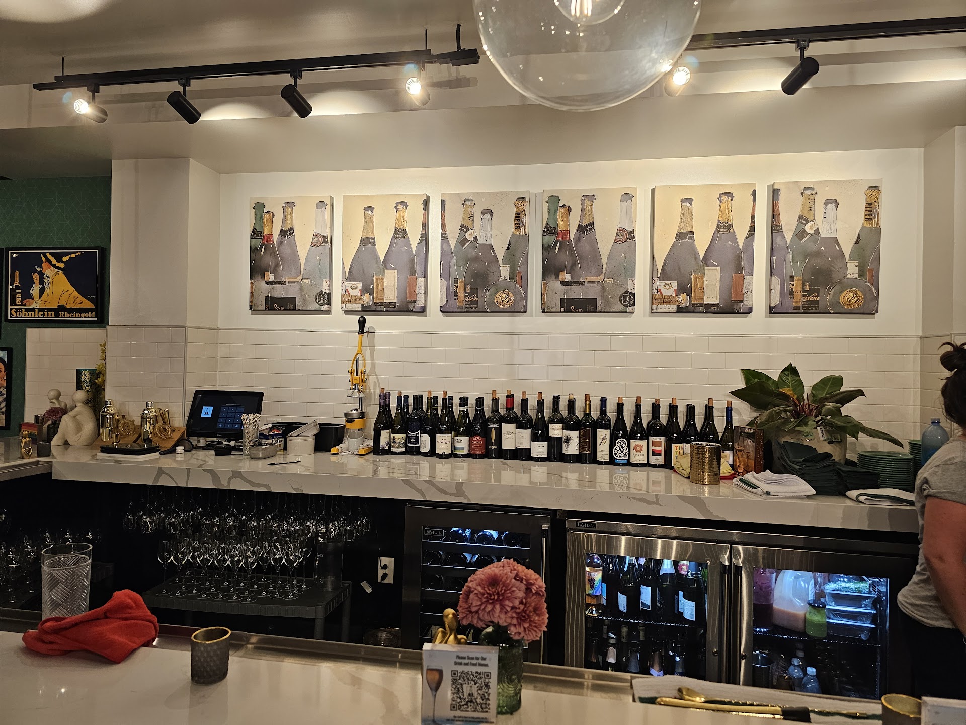 Read moreUpdate: brought my wife this trip to NC (she's working on a MW after finishing WSET Diploma) and she thoroughly appreciated all the detail that went into the choices made for vibe and atmosphere here, and the gal playing guitar outside didn't hurt the ambiance of the place. Female-owned, female-driven, living wages, phenomenal curated wine list, nice small bites...geeze! Again...tops for probably the state of NC, let alone Cary. Her favorite glass was the Phillipe Fontaine Champagne--don't miss it! The Chibatta w truffle butter cost almost nothing and broke up everything perfectly-- honestly, if I lived here, I'd make weekly trips here just to take the butter home. I think we dropped a couple hundred exploring the dark side of Champagne, but without my wife's presence the first visit to NC I can say I loved my less expensive Lambrusco and even the Elio Altare Barbera...I'm just a sucker for Italian reds...so if bubbles aren't your thing, you're covered. Bottom line, wifey gives the stamp of approval and she's got the creds...so happy my ground work ended up being worthwhile. The owner must live here and even remembered my visit 4 months ago--again confirming the customer orientation. This place is just too right. 😝