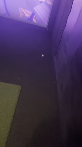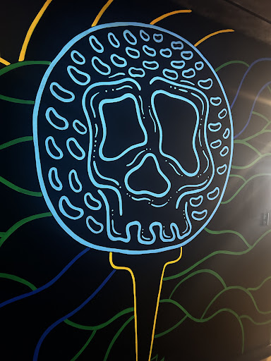 This isn’t just a bar—it’s a neon jungle with a sense of humor. The walls are slick green and midnight black, splashed with glowing doodles that come alive under black lights, making every corner feel like a cosmic cartoon. One minute you’re sipping a cocktail in the glow, the next you’re teeing off inside a golf simulator where the fairways stretch farther than your imagination (and your swing). It’s part clubhouse, part arcade, part downtown secret hideout.