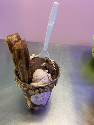 Read moreThere's simply so much packed in this little place! Stepping into this place, one is literally transported to a cafe in Mexico or a Caribbean island. Latin music playing and colorful displays...they serve everything from rolled taco ice creams, regular ice creams, paletas and fruit cups. Alongside with the sweet stuff, they also serve savory snacks. We started off with the street corn and churros split. The street corn was super soft and juicy. I expected it to be roasted and slightly more Spicer. However the freshness of the corn and the hot sauce on the side made up for it. The churros was fresh and the ice creams were good. We took the pinenut, pecan and ferro rocher. Our toddler loved the strawberry butter. Their options for popsicles or paletas were endless and I liked that they had smaller sizes for kids. We took the spicy guava, spicy mango and tamarind. They looked super good and would probably serve as a weeknight treat for our family. While heading out, I noticed the staff actually pealing fresh tamarind for their ice creams.