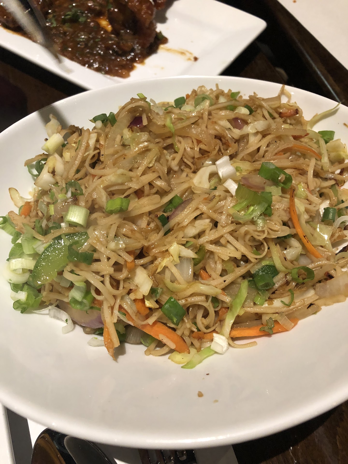 I ended up ordering the hakka noodles with chicken and They. Were. AMAZING!!!! They came in a serving - size bowl so I thought, "I'll take half of this home." No way! I ate the whole thing, it was so delicious!!! I must confess, I also ordered the hot fudge brownie sundae. Also delicious!!