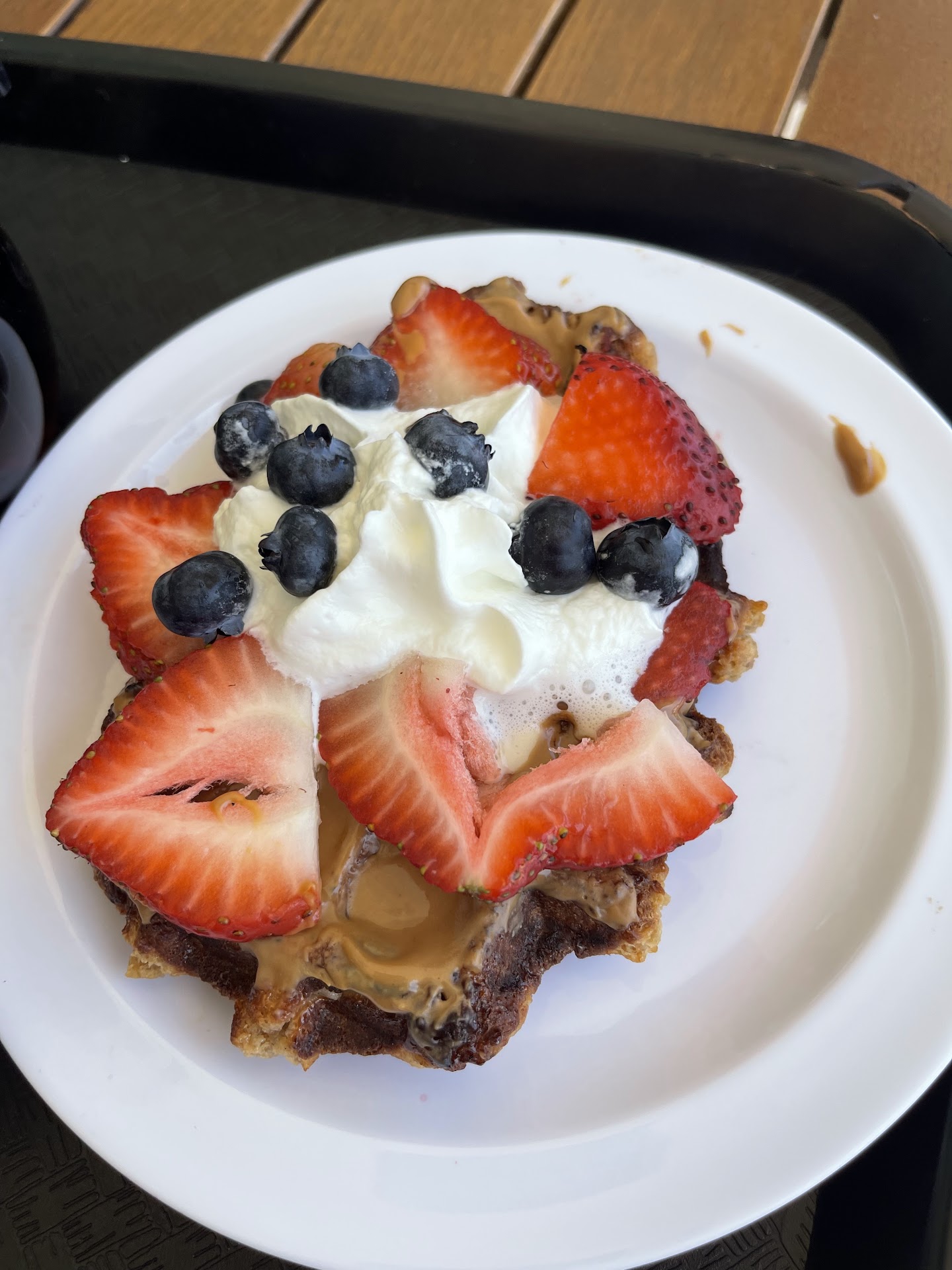 They’ve got a nice variety of food options, including smoothies, protein shakes, acai bowls, waffles, and toast. We tried the Triangle acai bowl and the Bunny Hop liege waffle. The acai bowl was delicious and priced pretty comparably to other places. The waffle, though, was a bit of a letdown. I’ve never had a liege waffle before, but this one was super dry and crumbly—it basically fell apart when I tried to cut into it. The portion size seemed really small and at $11, it didn’t feel worth it.