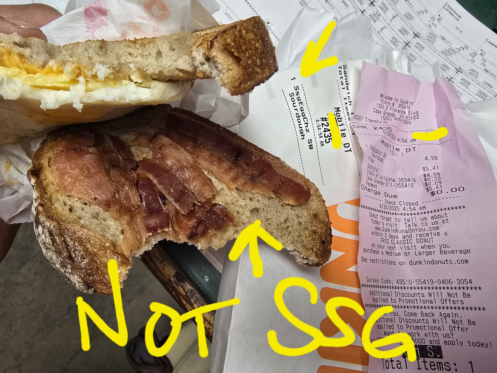 Ā Ā Ā Read moreSo my wife and I went on Sunday, it was our first time there. She ordered a breakfast with an English muffin, we got our order and when she opened her English muffin it completely burned, as black as my tire burned, so I took it back up there i guess the guy who was there was the manager, anyways he was standing there when I told the young lady behind the counter that I would like my sandwich not burned, so she told the kid who made it, and he had an attitude, said he had it on the toster setting, so he made another one, however that was burned as well, my wife ate it anyways, however she said it was completely bitter! When we were leaving my wife told the manager and we made it clear we didn't want anything but the muffin came out burned twice and we would not be coming back, he did not offer an apology or nothing! He is too busy trying to be friends with all those kids there instead of running a business...I would rather drive to Maricopa to eat at dunkin doughnuts at Harrahs than eat at the place that is 5 mins from my house. Run your business instead of trying to be friends with your employees! Pay attention to your complaints instead of...