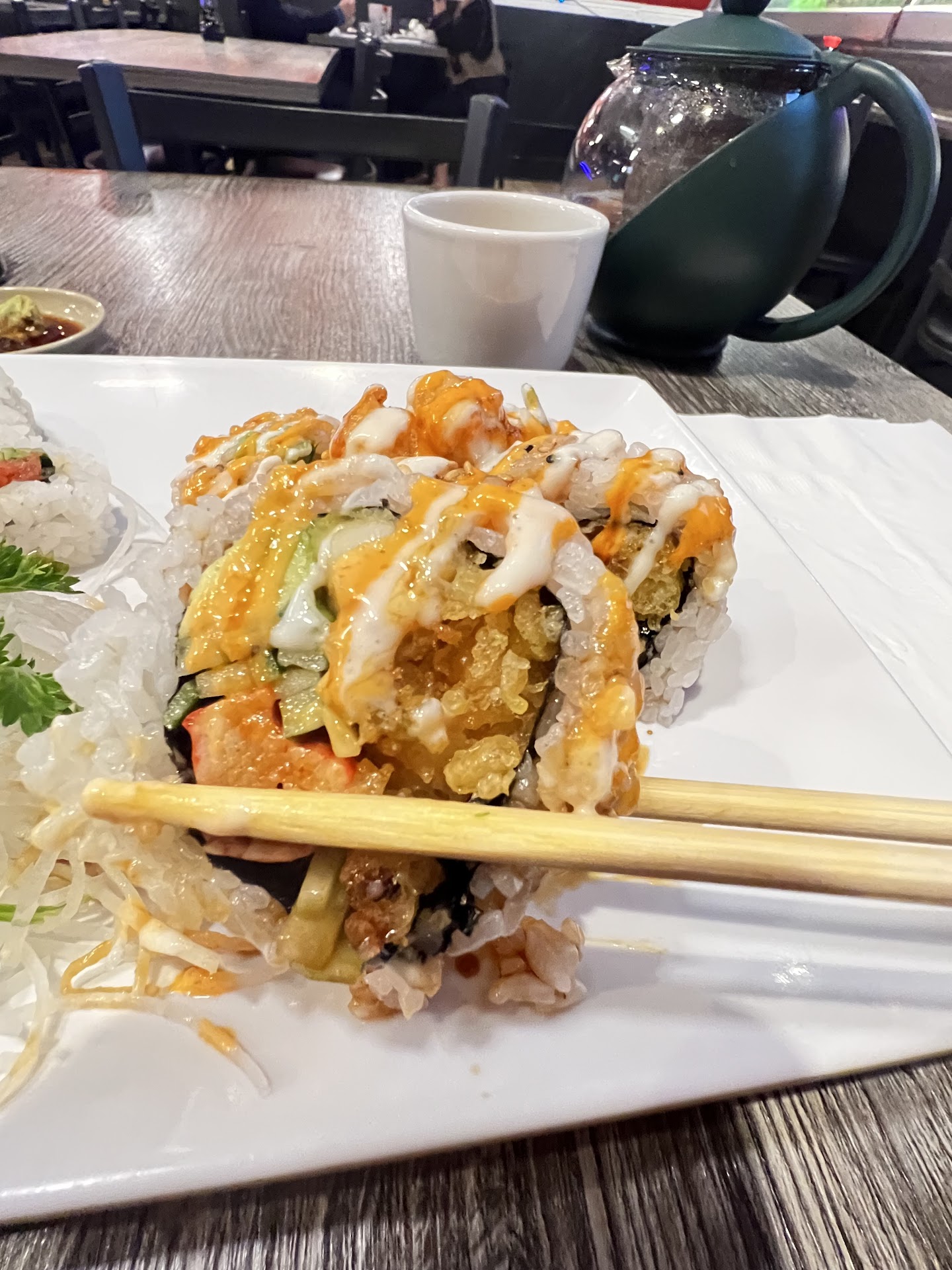 The 9 piece sampler was good it consisted of Tuna, Salmon, and Yellow Tail. It is always impressive when you can find fresh fish in the middle of the desert. The slices were larger than I expected, and were very flavorful. Most places give you shavings of fish these were thick.