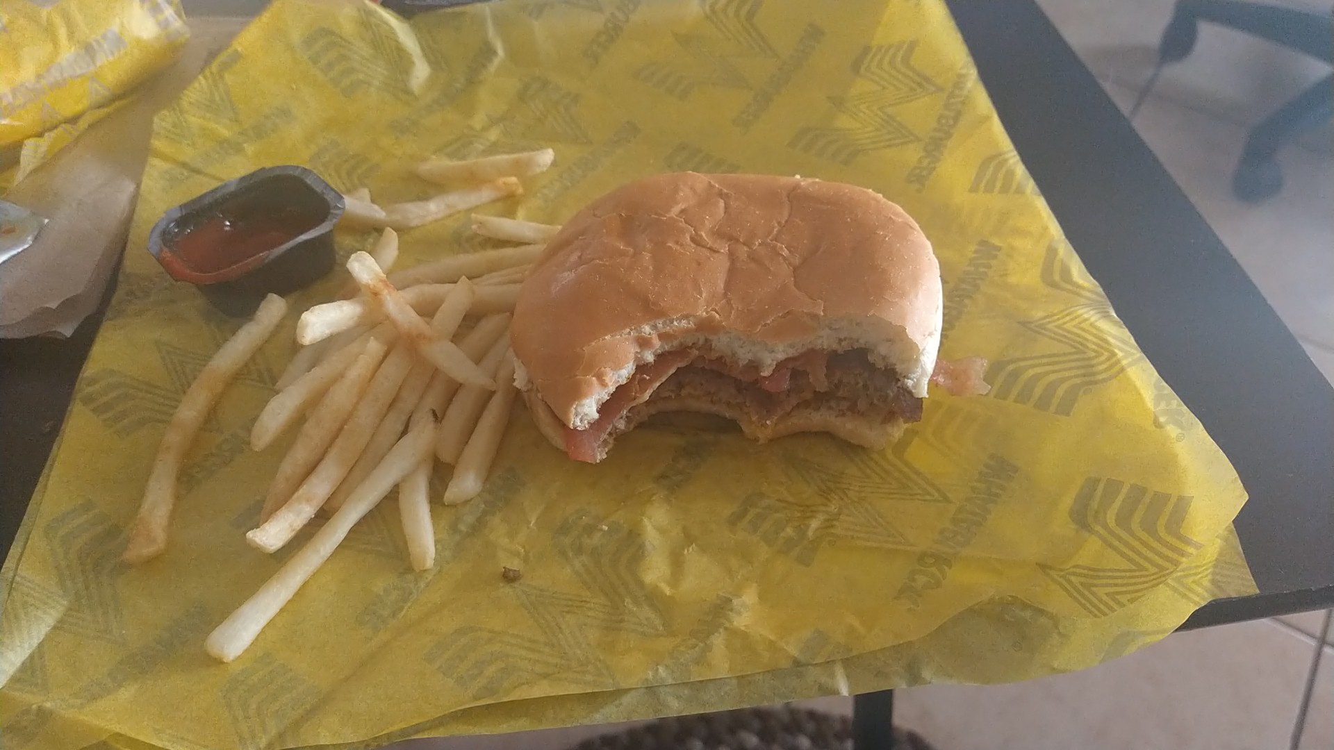 Arrived as a result of a Google search. The facility is (+/-) a mile west of I-10. The store appeared clean and problem free from the exterior. I utilized the drive thru feature. The store was extremely busy and long lines existed. Unlike some who turned around and left, l was hungry enough to remain and endure. Ordering was straight forward and problem free. Lag time from ordering to presentation was as expected and disappointingly long, but expected given the scope of the lines ahead of me. Girl at the window wasn't very bright, I'm always preplexed why fast food workers believe that my hand is a catch all as the staff combines the receipt and my change into one big heaping mess and then dumps it into my hand expecting me to compensate for their lack of reality coping skills thinking that returning change like this remotely makes sense. Fortunately I was able to compensate, retaining my funding despite the mental breakdown of bad decisions. My food was presented hot, fresh and delicious, but was not problem free. Immediately after driving away, I found my fries to be warm and not hot, they simply lacked anything remotely impressive in the wow department. And while l love green chilies, my double green chili Whataburger was buried in green chilies to the point that a large portion had to be removed. Additionally a significant portion contained inedible fibrous stem matter indicating that the chilies were poorly cleaned. My food was obviously prepared by hand indicating that any prep failures were done willfully, intentionally and deliberately. IF THE STAFF WOULDN'T WANT TO INGEST THE END PRODUCT, THEY SHOULDN'T FEEL OBLIGATED TO SERVE IT. My large soft drink was essentially a cup jammed packed to the top with ice leaving little to no room for the intended product, again this was obviously done deliberately. My hot apple pie was absolutely beyond delicious and unfortunately proved to be the best part of the visit I wasn't expecting perfection, but l truly felt the staff fell well short of projecting their best effort. Definitely wasn't one of my best experiences with this chain.