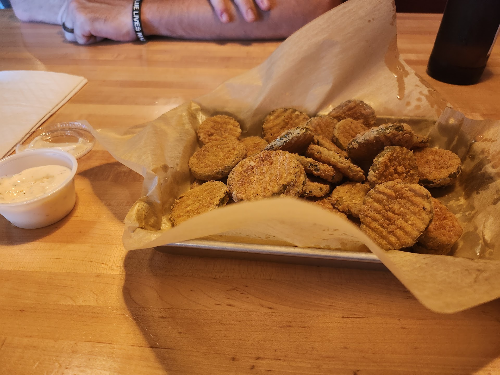 Read moreWanted to edit my first review to say i just ate there again, and by golly, they did it again!! Best freaking meal i've had since the last time we ate here!! End of edit// My fiance and I are staying at the Baymont directly behind this place, so we thought "well, hopefully it's good"... IT WAS DELICIOUS!! My mushroom and Swiss burger was the best I've ever had (Hotdogs Plus in Niles formerly had that title)! It tasted like the brioche bun (always delicious) was toasted on the grill with butter, and the cheese and shrooms were melted together like Spongebob and Squidward, it was GLORIOUS. And I need to express how well done the fried pickles were: everyone else just breads a giant hunk of sphere and calls it day; then you end up with a big chunk of hot pickle in your mouth with ranch, and the breading always comes off in one sheet - no bueno. Bagger Dave's has Fried Pickle Chips DONE RIGHT! Holy moly were they amazing! Perfectly crispy, breaded to perfection (not to much breading), and paired with some classic ranch dressing they were INCREDIBLE. We come to GR often for concerts, and if we're ever in this area again, I will 100% be...