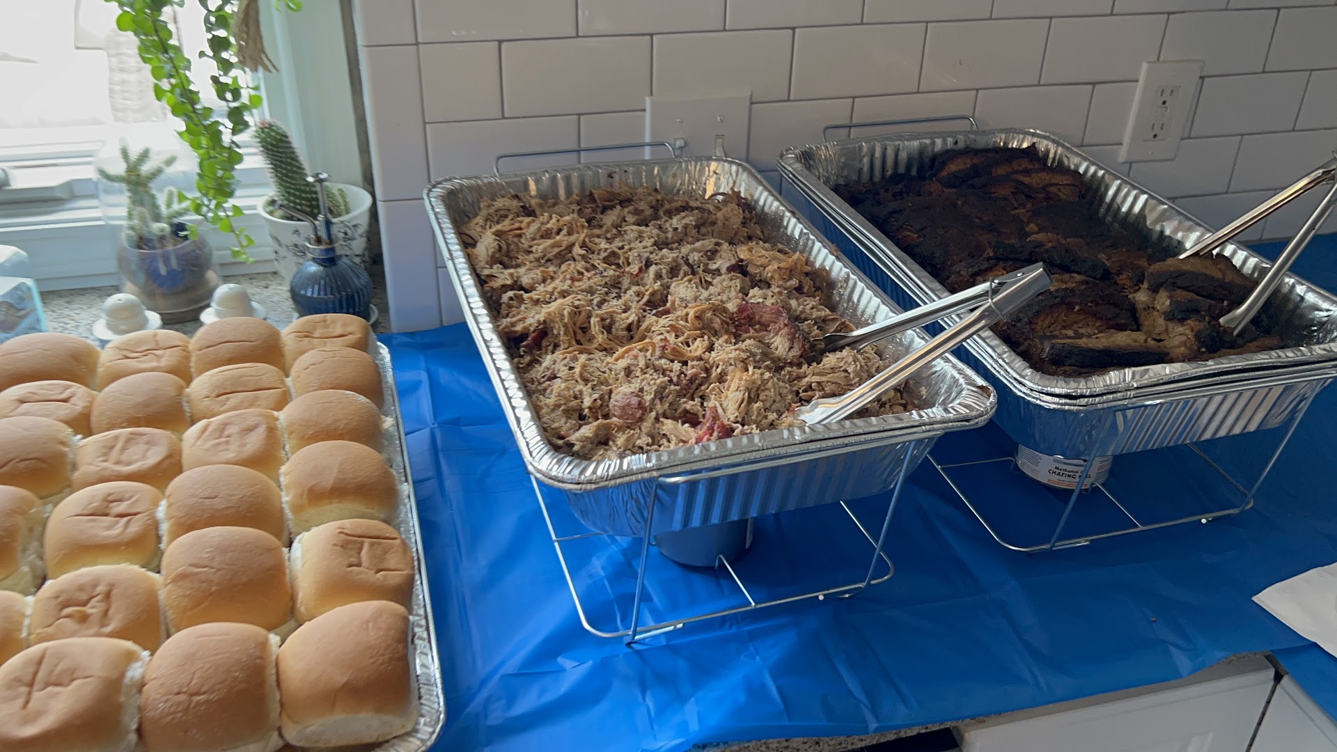 The sausages in mustard sauce were very tender and easily one of my favorites; probably because I like mustard sauces. Both the corn beef brisket and corn beef burnt ends were excellent, moist and flavorful. I recommend getting some, which requires a Thursday visit. The beef brisket and smoked chicken legs had good flavor, but were a bit dry this time and the sauce helped. The baked beans are sweet with bits of meat. However, they a little too sweet for me. The corn bread was sweet and moist. The cheesy tots and macaroni-n-cheese were both good too, but the angry tots were the winner in the carb-sides. The angry tots are a spicy version of the cheesy tater tots and they had a nice spicy kick to them. Get ‘em if you enjoy spicy.