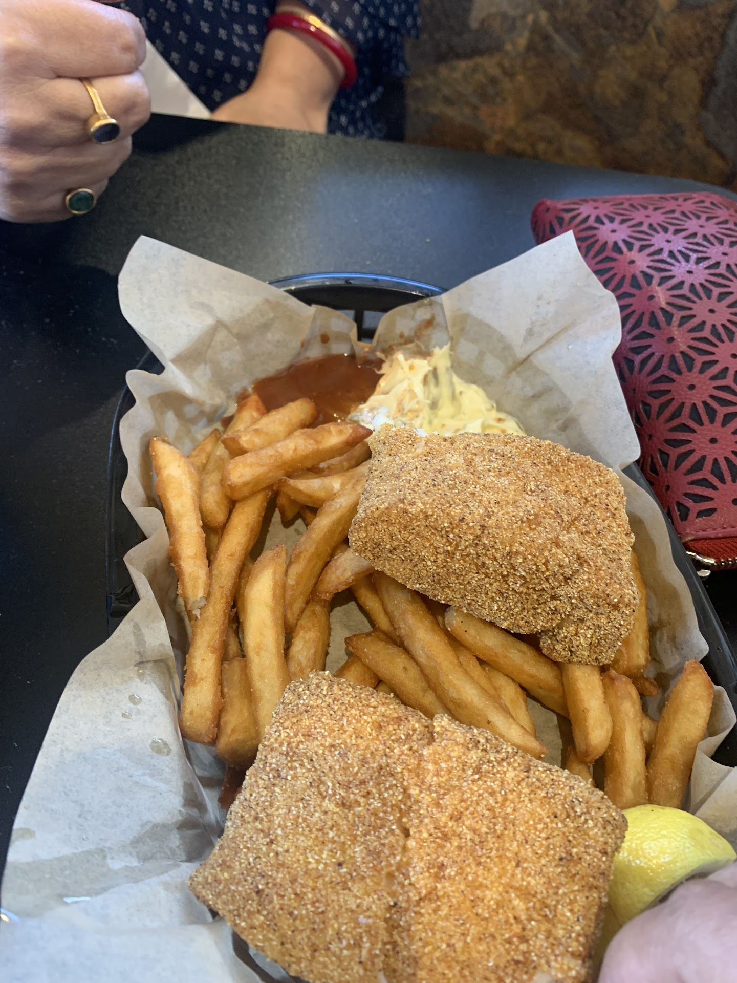 Read moreThis was our first time eating here. We were welcomed when we arrived. Staff was so very nice and extremely helpful. We weren't sure what to order but the staff made great suggestions. We were given a sample of the clam chowder and the salmon chowder. Both tasted fantastic but we went with the salmon chowder since we had never had it. We got the Alaskan Halibut fish and chips to share. They brought the salmon chowder out to our table along with little chips of shredded cheese and shredded salmon. That made the chowder even better than it already was. The coleslaw was really good and we ended up bringing the rest back to our campsite. The halibut was delicious is and very moist. We went with the Louisiana coating on the fish. They have plenty of seating outside and a smaller seating area inside, which is perfect on a cold day. They have plenty of seafood to select from, sold by the pound. We were just traveling but we do come into the area every year, so this will be our new place to eat whenever we are in town. Thank you for a great dining experience and the Halloween treat...