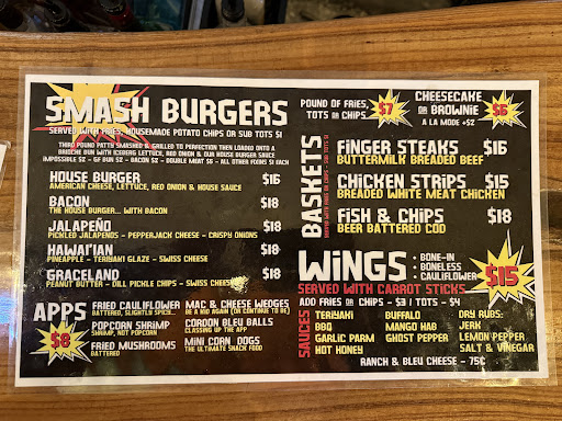 Read moreGreat food, great prices, great service and a really awesome vibe inside. We were in the area for the weekend and needed dinner and just about everything was closed, we are so glad they were opened as they had really good food. From the jalapeño smash burger, to the tots, to the buffalo wings, to the Cordon Balls. All good was fresh and tasted amazing! We enjoyed our meal and will definitely stop in again when we return...
