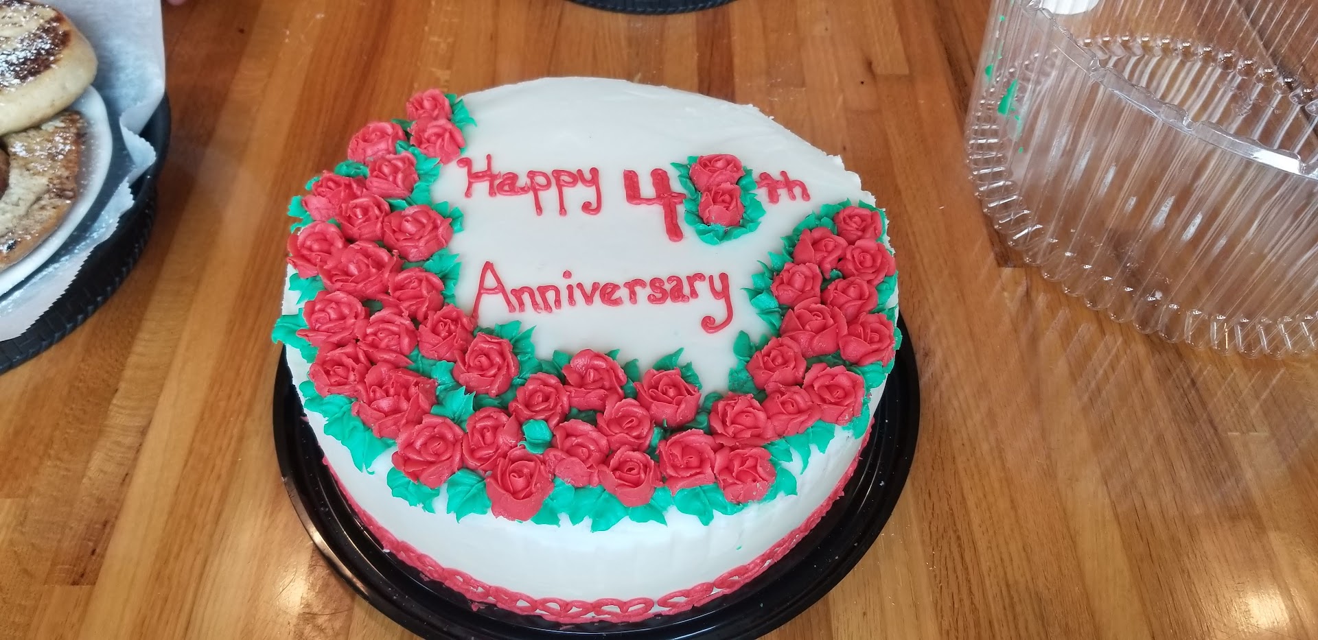 I am from Chicago and my family went on a camping trip to Cascade IA. My parents were celebrating their 40th Anniversary so I wanted to do something special like a cake. Being in a small town I did not have many options and was a little concerned about what I might end up with. Cheryl's red velvet cake did not disappoint! Wow this cake was delicious and one of the best I have ever had. The cream cheese frosting was to die for and the cake itself was moist and dense which I love! Also, the cake was beautifully decorated with little roses and a heart border. The weekend was a rainy mess and going to Cheryl's was definitely a highlight along with the delicious breakfast and...