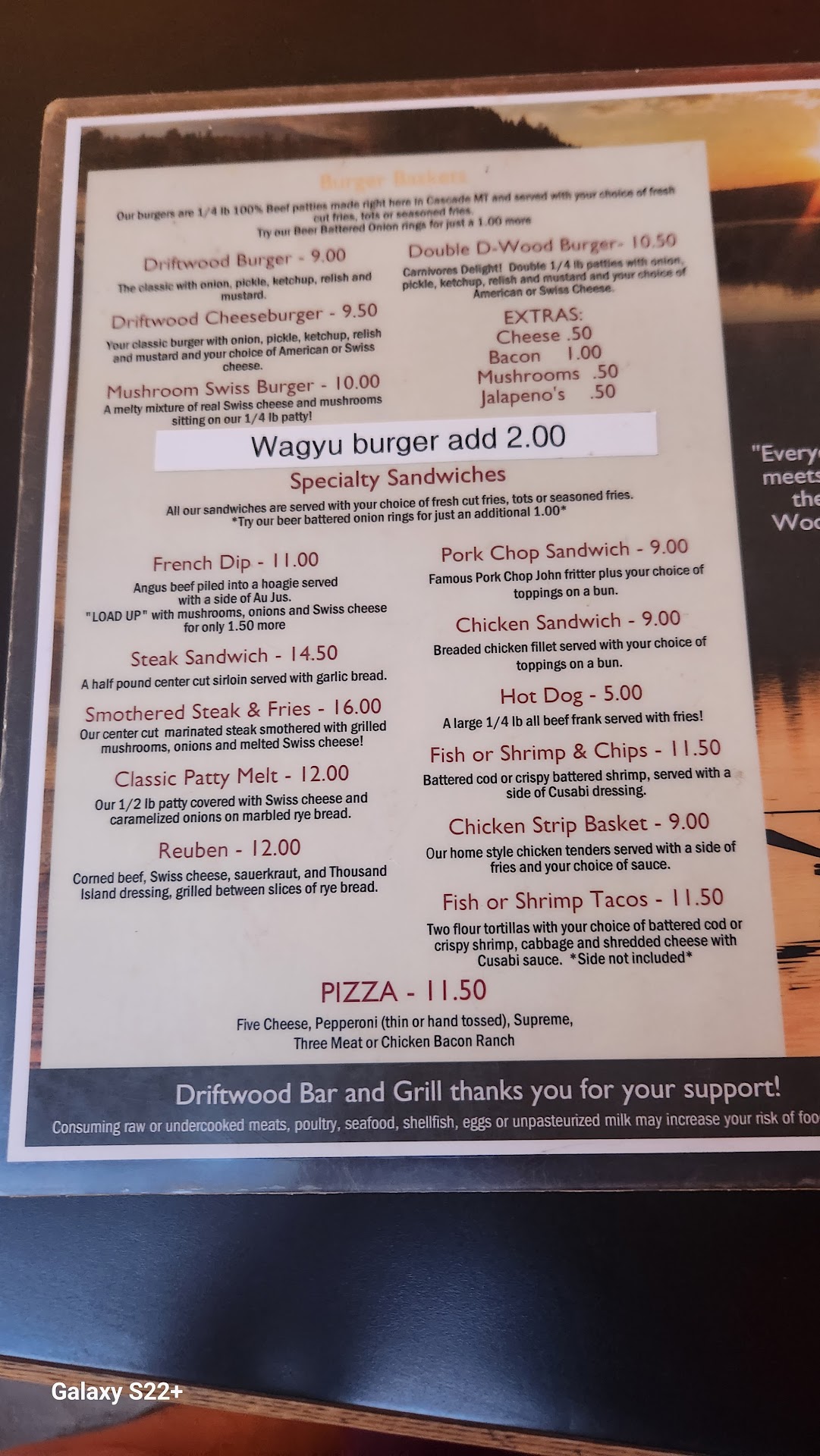 The food was good . We had a mushroom Swiss burger . The only downfall was we were sitting next to the pool table and there were 5 kids playing with the balls and being noisy , could hardly hear each other talking. We were with friends . The staff should have asked them not to play with it. ( because the parents obviously werent ) But the waitress was very nice and the...