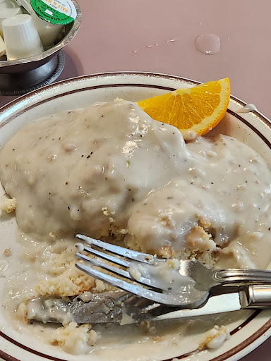 Read moreThe 30min wait didn't bother me... now... we were finally seated.. had menu's water. Glasses. Silverware. She got us our drinks promptly.. after that.. we didn't exist. She (Becky) walked by us numerous times.. never acknowledged if we needed water or coffee top off.. until food came another 30 min later. Then topped off everything once and we never saw her again.. food was mediocre at best.. wife got the Benedict bowl.. muffin at the bottom was a hockey puck.. but She said the topping was good. I got chicken fried steak. It wasn't bad.. rather bland if I didn't add S&P to the gravy and topped with Tabasco.. the biscuit was ok.. kinda fell apart but was ok... kids meals were ok.. boy found the rabbit meat in his hashbrowns... (hair) but he put it aside and finished the meal.. still no inquiry from Becky if we needed anything more or if food was good... or if we were still alive... I understand being busy on a sunday... but I've never been ignored like I was today... you make the judgment call to eat here or not... I won't darken their...