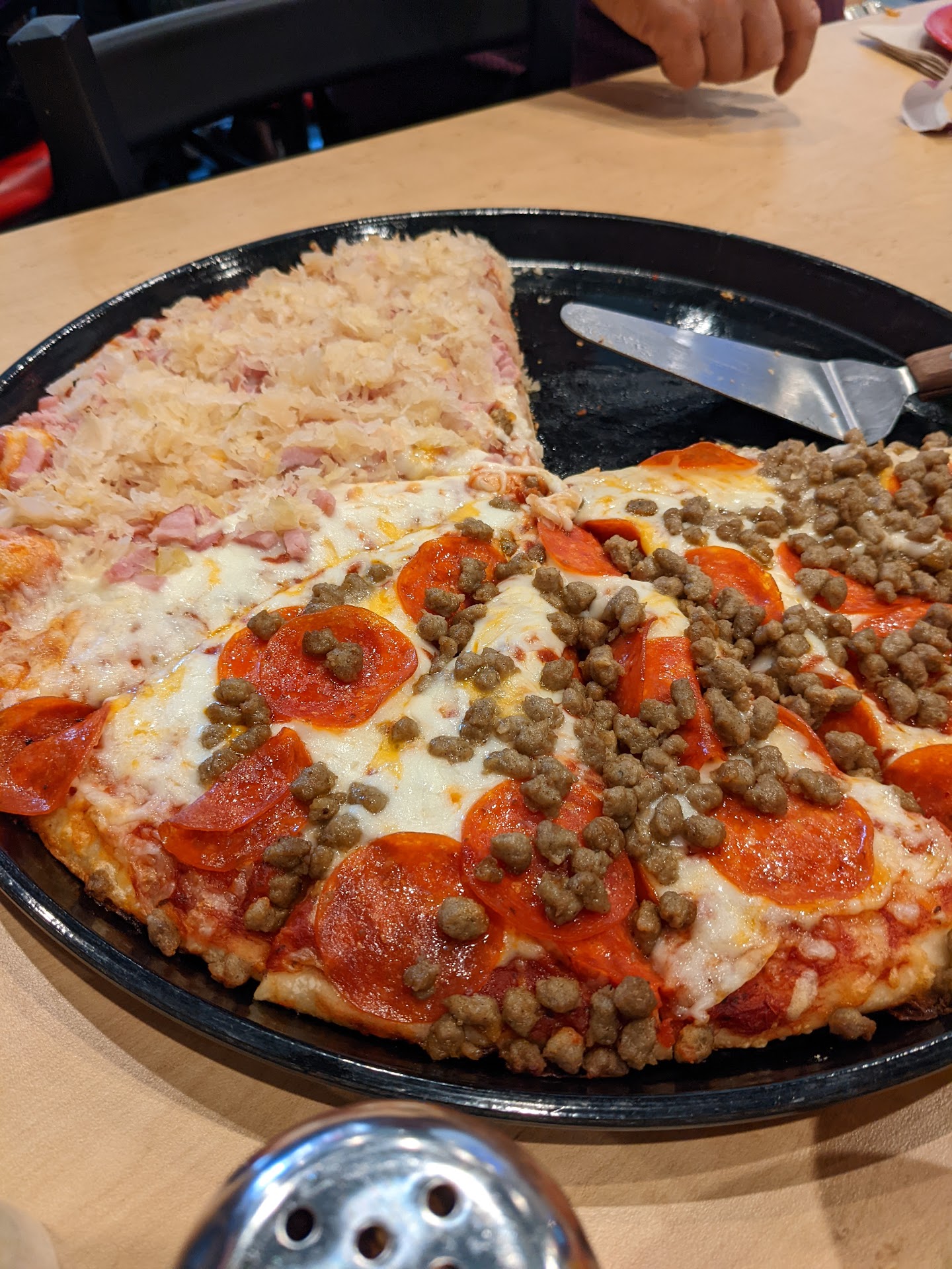 Read moreWe drive 30 minutes to get a pizza from here and today....it sucked....very disappointed. We ordered a medium Original crust with pepperoni, hamburger and really light on green peppers. It came with mega green peppers...the hamburger was way over cooked and laying on top of the pizza and everytime you put it to your mouth.. the hamburger would roll off onto the table or the floor. And there was way too much sauce on it also. We barely ate half of it. What a waste of money and gas to drive there. It will be a long ....long time b4 we go back to...