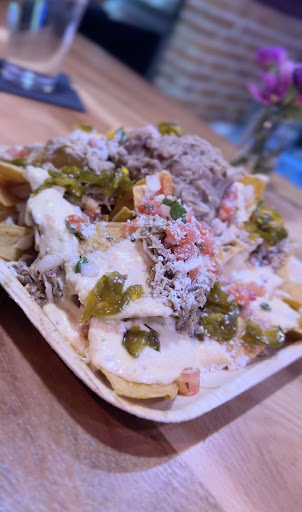 Excellent white queso nachos. The sweet pico de gallo and pulled pork that tops it fills every chip layer with a topping. The drinks were made very well even down to the water cup being cooled, sprayed, and filled with the amount of ice you would like.
