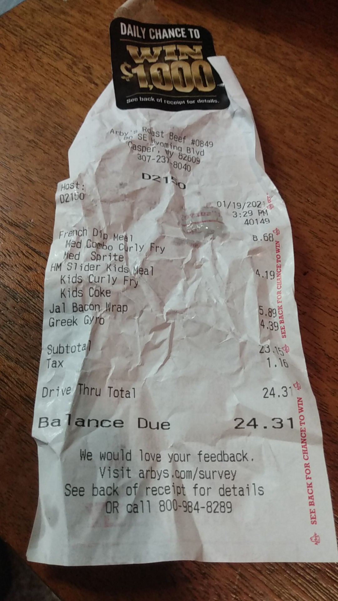 Read moreOrdered food from there appropriately 20 minutes ago. I order Turkey Bacon Ranch sandwich with what was supposed to be NO onions or tomatoes. Who ever took the order stated they could not take them off. It was made clear there was an allergy issue. I assumed they removed said items as it turns out they did not they did not even put the ranch on there they instead put possibly honey Dijon mustard on it. So if you have allergies I WOULD NOT recommend Arby's as they don't seem to care if you live or die.