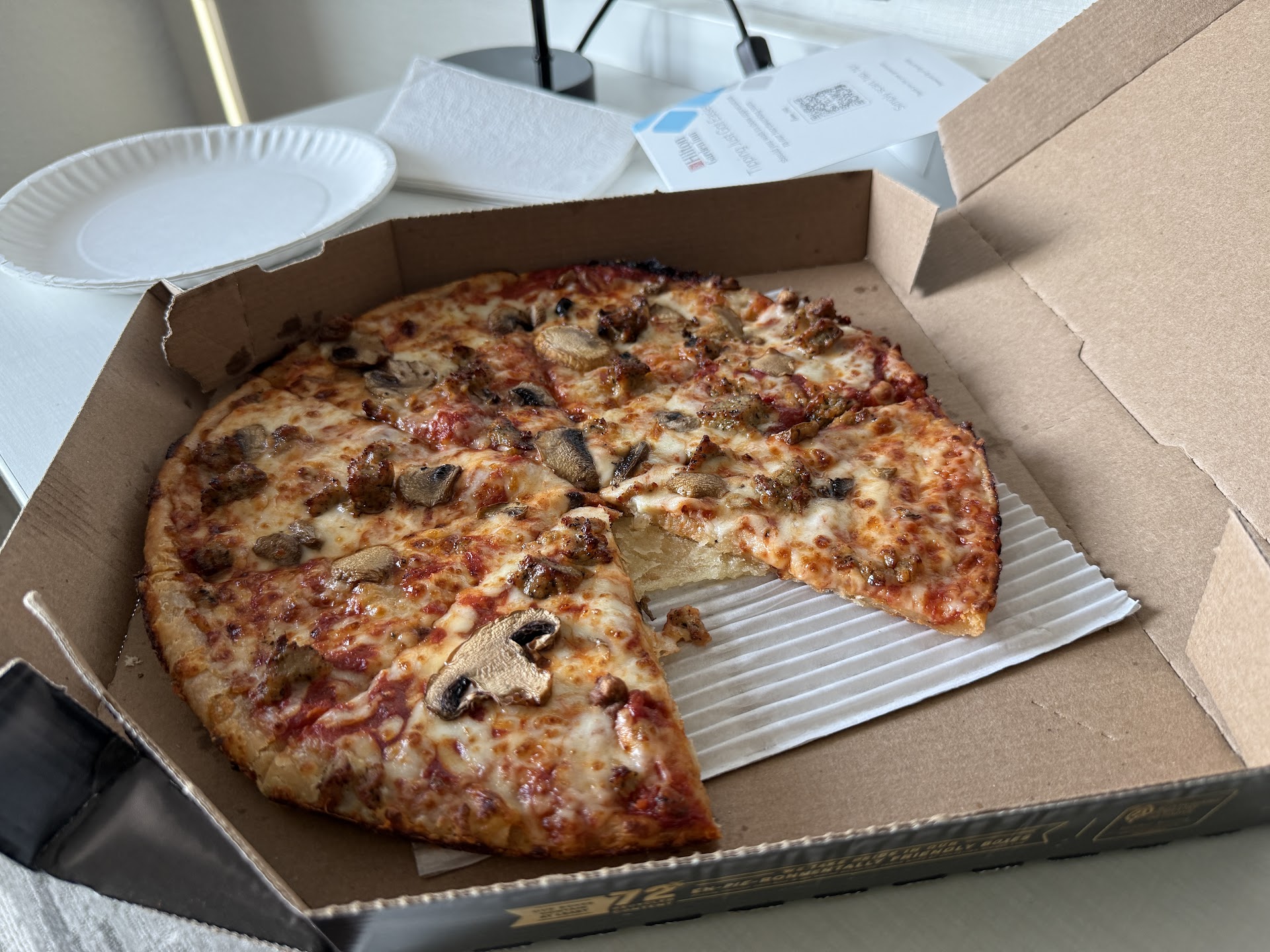 How do you have three dominos in a city and NONE of them have a drive thru window? Forcing people to order delivery after a certain point in the evening. I order the usual same thing every time I order, yet when I tried to order, it kept saying one of my pizzas was $1-2 more than what it should have been. Only thing that was changed was the type of sauce: meaty marinara was more than the robust inspired tomato and I usually get extra. It wasn't the meats..I went around and tried different settings and it didn't pop up for those. I just went with the latter. They didn't send me the usual "took it out of the oven, doing a quality check, can start heading this way" text or update it on the app, just a "it's ready, come get it". Nevertheless, got there, asked him why there was an extra charge for the sauce or if he knew why it did that...he didn't know, didn't ask anyone and ultimately didn't care enough to try to solve the problem at hand. Pizzas were alright but when I say I want extra sauce...I want extra sauce, not cheese.