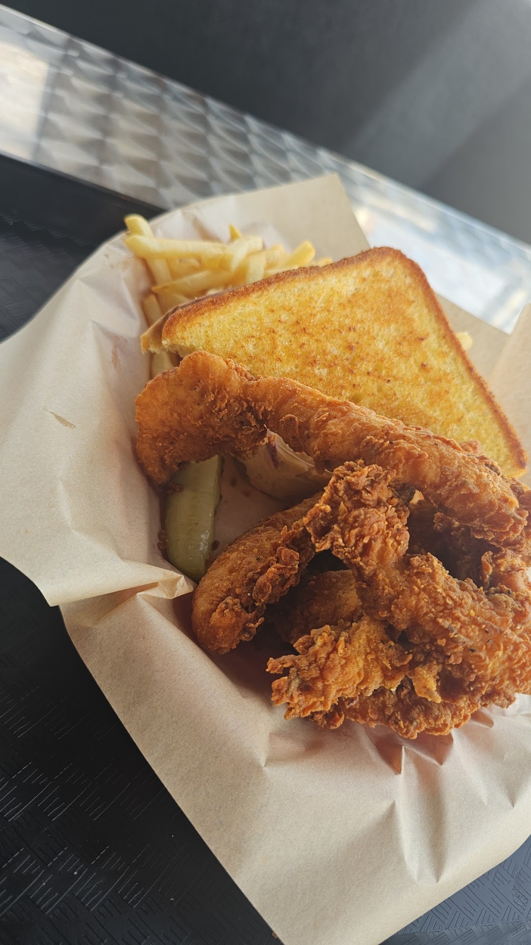 Tried out this new chicken spot and overall, the food was pretty solid! The chicken was hot, crispy, and full of flavor. The cowboy ranch and flock sauce were both great compliments — definitely recommend trying them. Fries were just right too — not overdone or too salty. The food presentation was also really nice, which added to the overall experience.