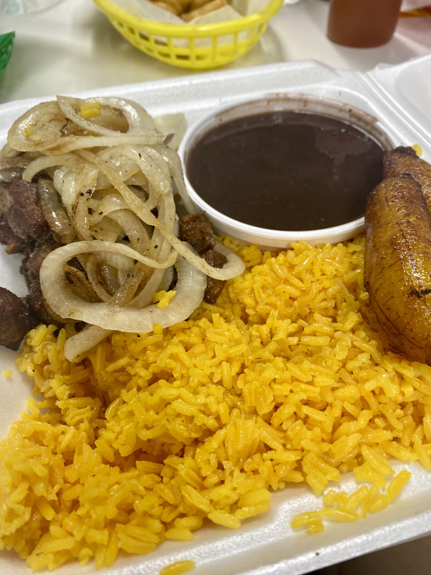 Our order included a roast pork sandwich, a plate of ropa vieja, and a guava and cheese pastelito. First, the roast pork sandwich was just gross and my boyfriend couldnāt even finish the other half by how unpleasant it was. It tasted like cured deli meat and didnāt look at all like actual roast pork. The bread was soggy, there was no onions. The ropa vieja was dry, had no of the sauce and no potatoes. The maduros were barely cooked, they were still firm inside. And about 75% of the container was rice. The guava and cheese pastelito was swapped out for a āquesito.ā I have it in quotations because it has no sugar on the outside, the filling was literally straight salty cream cheese, and it wasnāt crispy at all. It was like eating a cream cheese sandwich.