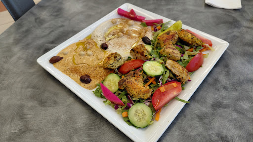 When you enter the store, the tables and counter are on the left (additional tables are outside). The staff was friendly and greeted us as we walked over. We asked about some of the items and they explained how some are made and what they were. My wife ordered the vegetarian combo and I got a chicken Shawarma combo. They were nicely plated and delicious.