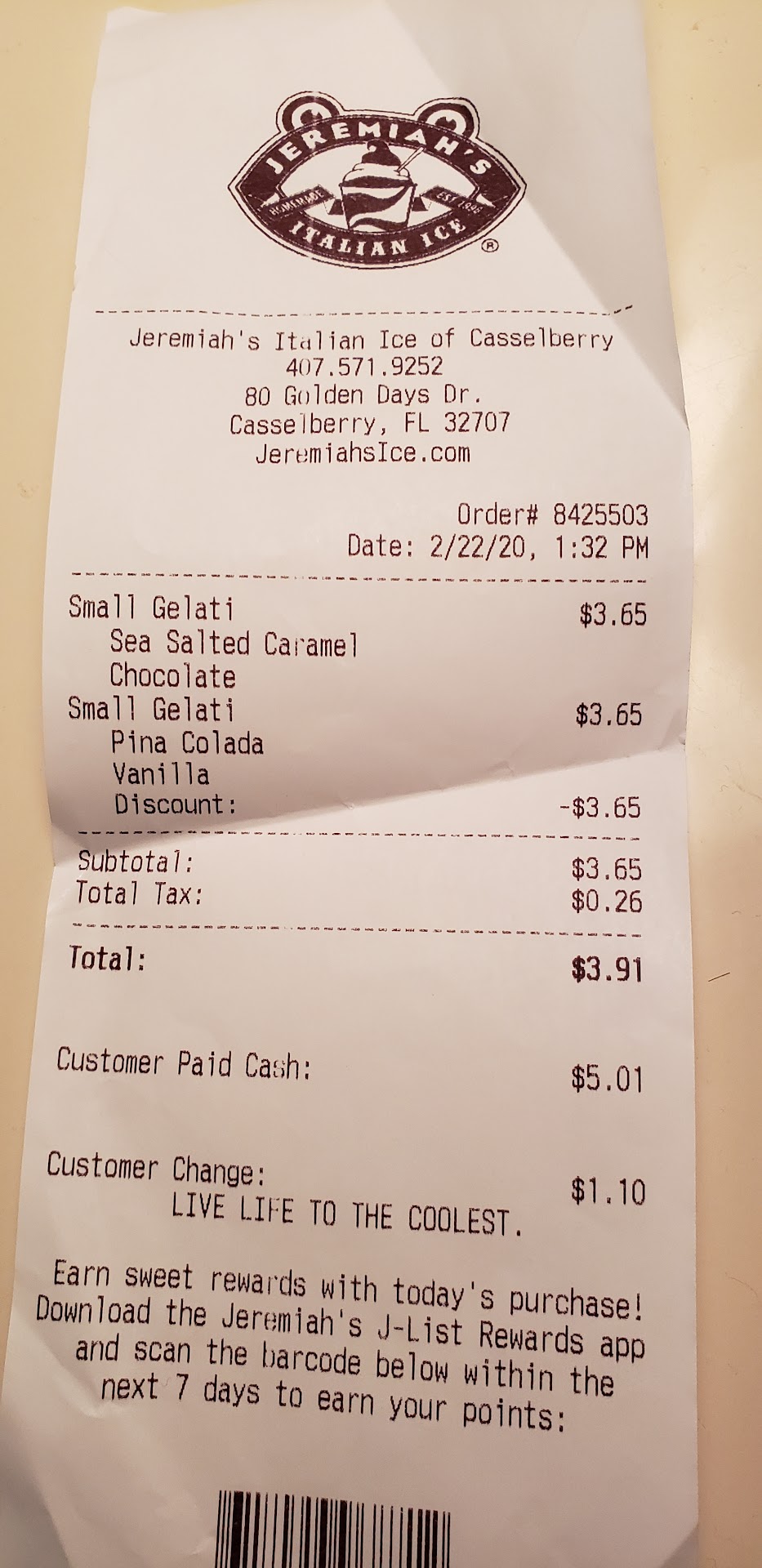 Read moreExtra YELP star for the young lady that took care of us today. If they have an "Employee of the Month " we recommend her. Sorry we didn't catch her name. We had a BOGO coupon from The Entertainment Book that brought us by this location. We hadn't been to Jerimiahs in a few years and this young woman was personable, knew their products and was professional at the same time. This Jerimiahs doesn't seem to jump out at you from the roadside like most others do and when we arrived we were the only ones there. This young lady was very patient with us in explaining the various products and flavors. By the time we made our purchase and returned to our car more customers were pulling in. You can stay in your car and drive through or use the walk up window like we did on this visit. Regardless thanks to the friendly and helpful employee and the BOGO we'll be back for sure. Oh, by the way, our employee of the month also let us know if we use their app we will also get a free icecream. That's the way to build...
