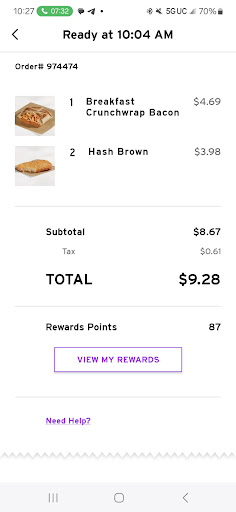 Today at 10:03AM, I ordered from the Taco Bell App since I know 11AM is the time they stop serving breakfast. After placing my order, I went to the location to pick up my food. On arrival, no one greeted me, just an awkward stare from the cook behind the counter as I patiently waited on someone to finish my order. Eventually, I was asked by the cook if I placed a Mobile order which I confirmed that I did. I waited 5-8 extra minutes for the other young lady at the drive thru register to ask me the same exact question I already answered - asking for the name of my order. She says its not in the system. Honestly, I was very confused because she asked me if I was at the right location which I was. I even showed this young lady my order on the app and she kept on saying that it wasn't in the system and told me they couldn't give me the food I paid for. I asked her how am I going to get my money back because none of what was going on made sense to me. She didn't proceed further to assist me on the issue or even tried to get a manager to help me with the error. The cook said "We can't give you free food if it isn't in the system" and apologized but honestly the whole interaction was unprofessional and it felt like they didn't want to deal with my order. I was truly disappointed on the way things were handled since as far as I know it was just the two of them working. Then the cook said at 10:15AM that breakfast was no longer being served so that meant they weren't going to make my order even if I did pay again from the kiosk and as long as I have been going to this location, I was never aware of Taco Bell not serving after 10AM. I need a full refund and I also need Taco Bell to hire better employees that are more personable with their customer service interaction when it comes to these issues. Worst experience I...