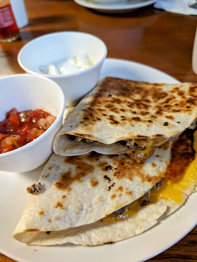 I ordered one of their specials off the board - a breakfast quesadilla. Filled with choice of meat (I went with sausage), eggs, cheese, peppers and onions with salsa and sour cream on the side. It was delicious! And a good size. I brought half home.