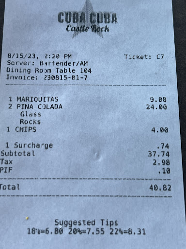 Read moreI really had high hopes for this restaurant, but my experience was so bad that I'm writing a review today, and I never do that. I called at noon to ask about reservations. They don't do that apparently, so I told the host that I had a large party coming at 6PM for my 35th birthday as a heads up. When we showed up, they has no idea and were totally unprepared. A manager I assume, a man in shorts, was rude to my sister-in-law when she inquired about how much longer after we'd waited 30 minutes because her kids were hungry. They never offered my mom with a walker or my uncle in a prosthetic knee brace a chair, so they sat at Starbucks next door on a bench outside in the light rain. When we did get sat after an hour, they failed to offer a high chair for my toddler niece or bring us adult or kids menus. We had to get up from the table to get them ourselves. Another manager, a woman in a black lace top, nicely brought the children rice before their meals came which is why I'm giving 2 stars instead of 1. Not that I care because I'm also a free spirit, but I saw her nipples every time she bent down to serve our table anything. Drinks were slow from the bar and but our waiter was extremely accurate and we'd gotten everything we'd asked for as promptly as you could expect from a busy Saturday and having a large table. Food was delicious. Nobody acknowledged my birthday at all, though they would have had to be completely oblivious we were celebrating something. But the icing on the cake was the the bill. A 20% "catering charge", presumably his tip, was added, which is fine, but this was not explained anywhere on the menu or communicated by the staff. When we asked about it, he nonchalantly told my mother he'd get "most of it" which is mostly true but partially a lie. We know you tip out the bar and hosts, don't be disingenuous to my elderly mother. He wouldn't split the check at all or accept multiple forms of payment so everything had to go on one credit card. What kind of restaurant prohibits what kind of money you can give them? Not one that wants my business again, that's for sure, which is disappointing because the food and mojitos...