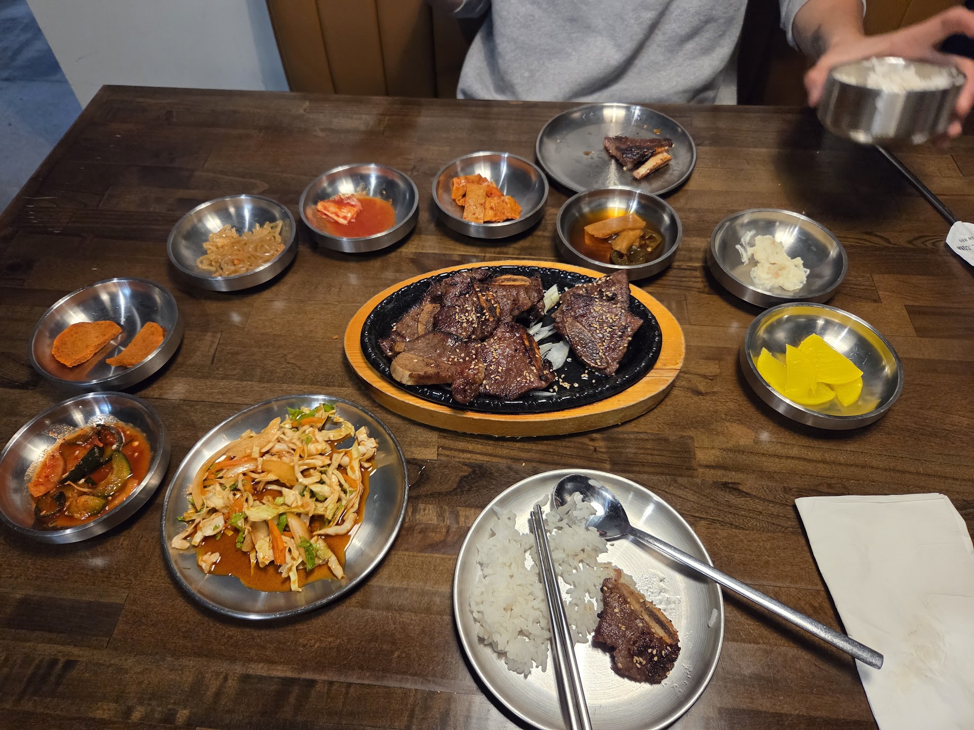 New review (Sept 2025): (2 stars now) Came for dinner this time, and with both my kids (teens). Was ok, I felt it has gone downhill even after just a few short months. We entered and I got handed menus and a water carafe and was told to take the first open booth. We had to switch to the last booth due to the booth in front of the first open booth (second one in was the open one) had pushed the booth seat back to accommodate themselves and I couldn't sit in the room left. The food wasn't as good as the first time, meat was fattier. The sides we got the same amount as when it was just 2 people whereas we had 4 people this time, exception was more dumplings. I also had to get up and ask for a refill of water for the carafe.