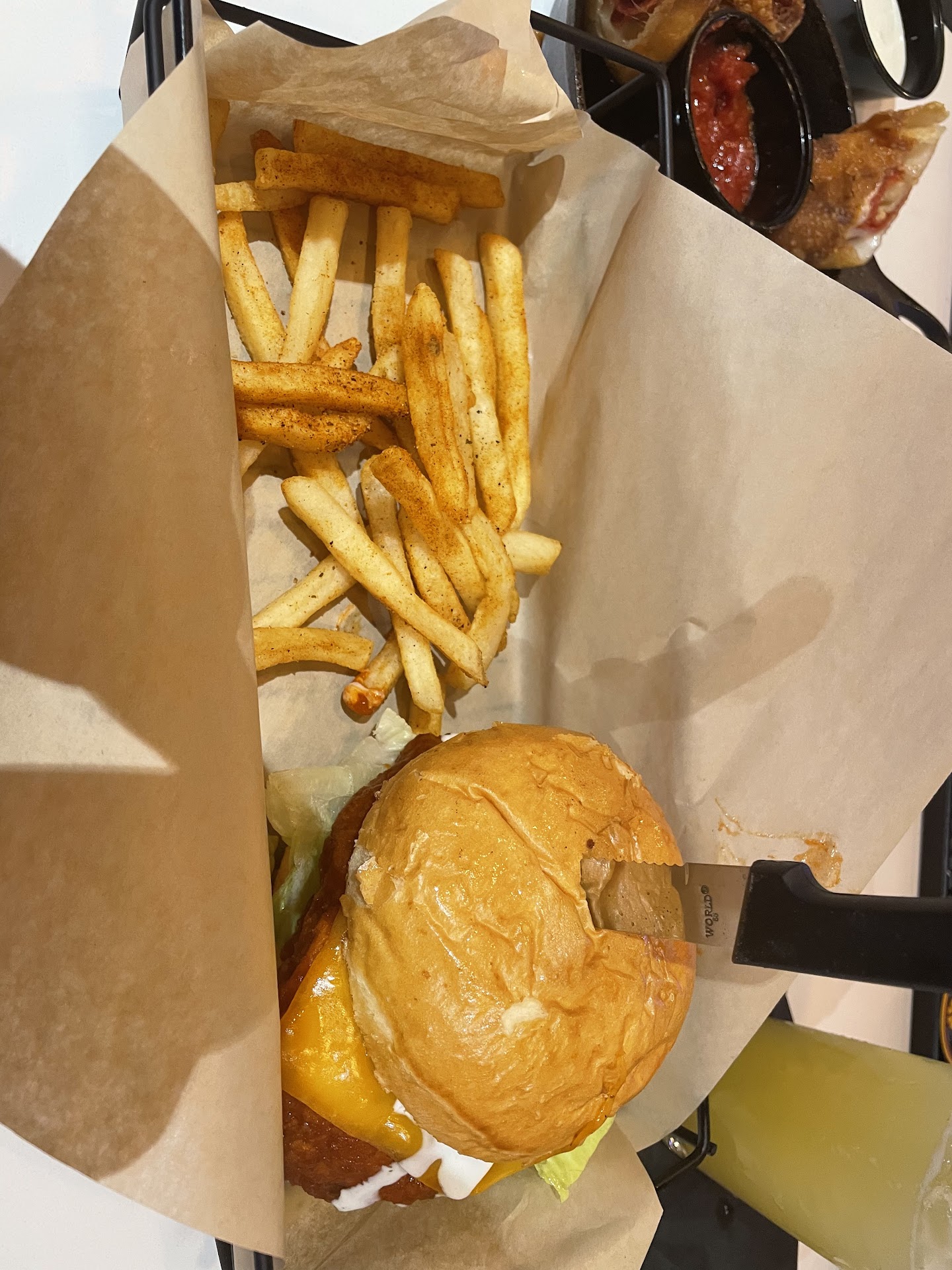 Read moreCute restaurant. The games they offer for kids to play are helpful and entertaining. The tables were really tight, no wiggle room for 6 people. The brussel sprouts were awesome, the fries were mid and my burger was good. However, the service was some of the worst I've had. We had 3 different servers. I believe this could've been the problem. We never knew who to ask for anything. There was a period of 45 mins no one checked on us and we all needed refills and napkins. The tables around us were being served and no one would look our way to see if we needed anything. We asked for to go containers 3x's and finally got them. Our teenage son fell asleep. I wanted to do the same. We waited again for our check. We were there for over 2 hours, primarily due to waiting on servers. I hope they change to having 1 server per table and maybe they'll be more aware of their assigned...