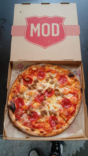 The most disturbing part of the new crew is the cleanliness. On 2 different times of going to this MOD in the last month I watched staff wear the same pair of gloves after taking payments from customers and then go right back to making pizzas without changing gloves. There is a younger male staff with long blonde hair who wears a bracelet that dangles off his wrist from the gloves and onto every topping and pizza he touches. Last night I watched him touch his hair, pull up his pants, take cash payments, fill up his drink and go back to making pizzas all with the same pair of gloves!!! I got so grossed out watching how often the staff touched unclean areas or their self with gloves on and not bother to change them before continuing to make pizzas... I opted not to eat the food because the unsanitary habits were so bad! Love MOD but the one in Castle Rock has gone...