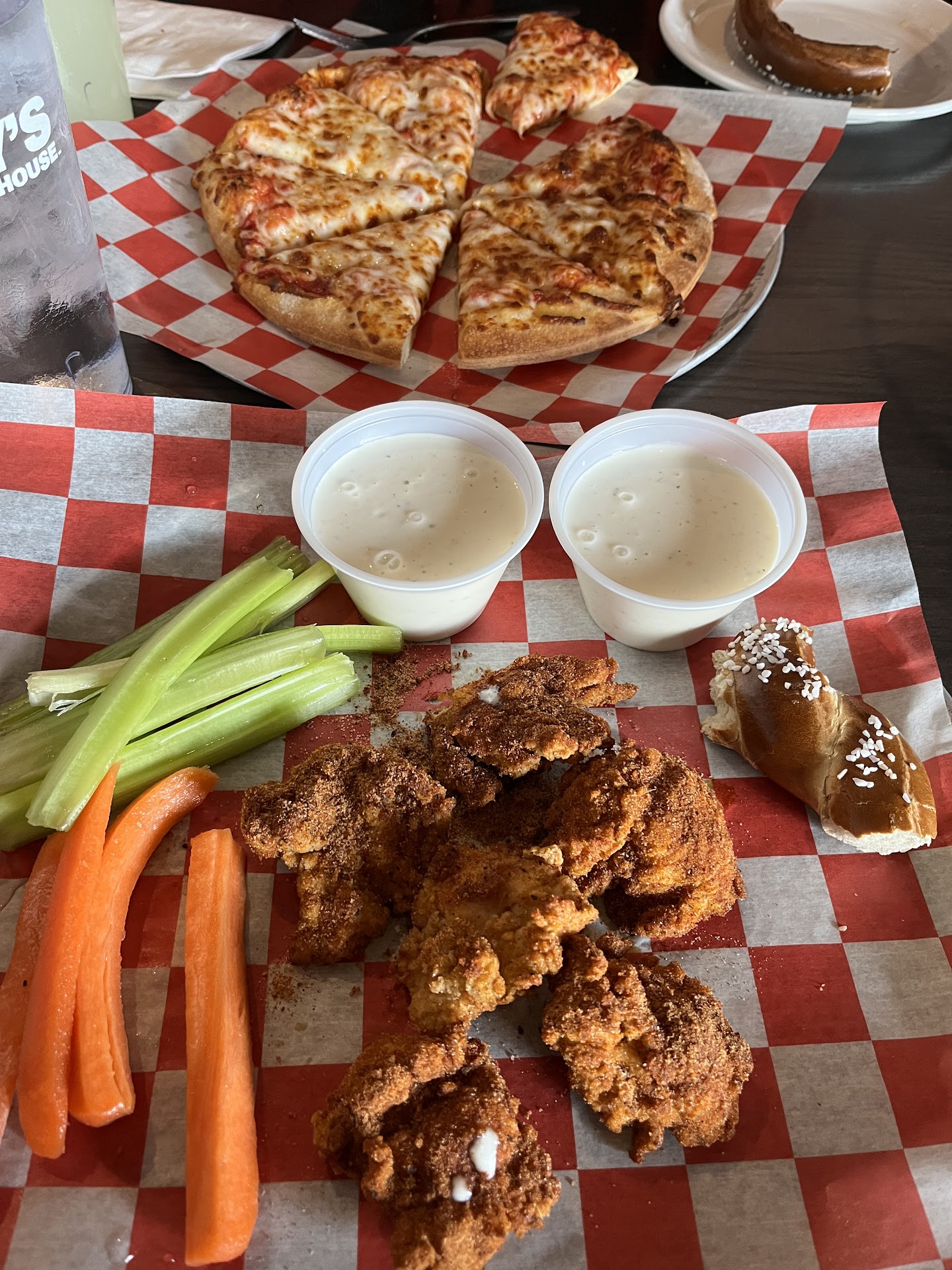 I arrive 55 minutes later, giving your team time to ensure my order was ready. I quickly realized by the line out the door that you were extremely busy. As I walk into your establishment, I ask another customer where the line for carry-out orders was and was told "good luck, it is a free-for-all." OK, so I walk up to the counter and wait. And wait. And wait. As multiple employees looked right at me and walked on past me. Some looked at me as they folded pizza boxes. I guess those pizza boxes are better paying customers. Finally, after standing there for over five minutes, an employee asked me if I had been helped. I let her know we had an online order and the name. They walk off. They walk past me multiple times but ensuring they didn't make eye contact. After five more minutes, they come up and tell me it would be another 25 minutes before my order would be ready. OK, so I walk back to my car to wait.