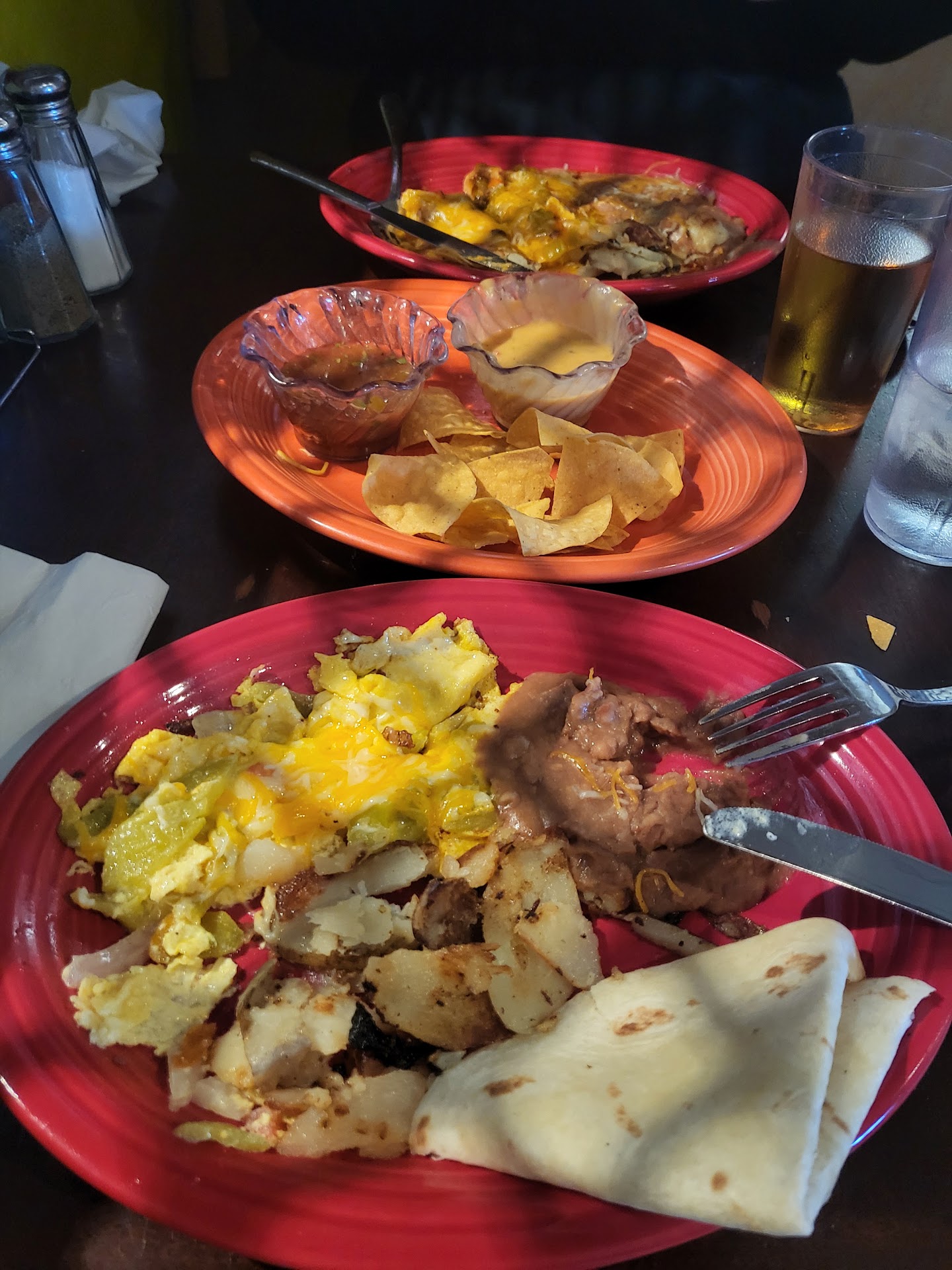 I ordered the Mexican plate, and my wife chose the Chiladas plate. Both dishes were flavorful and well-prepared, with the hallmark of their cuisine being the use of green chiles. Just about everything on the menu features green chiles or is smothered in them, which adds a signature touch but might not be ideal for those who prefer milder flavors.