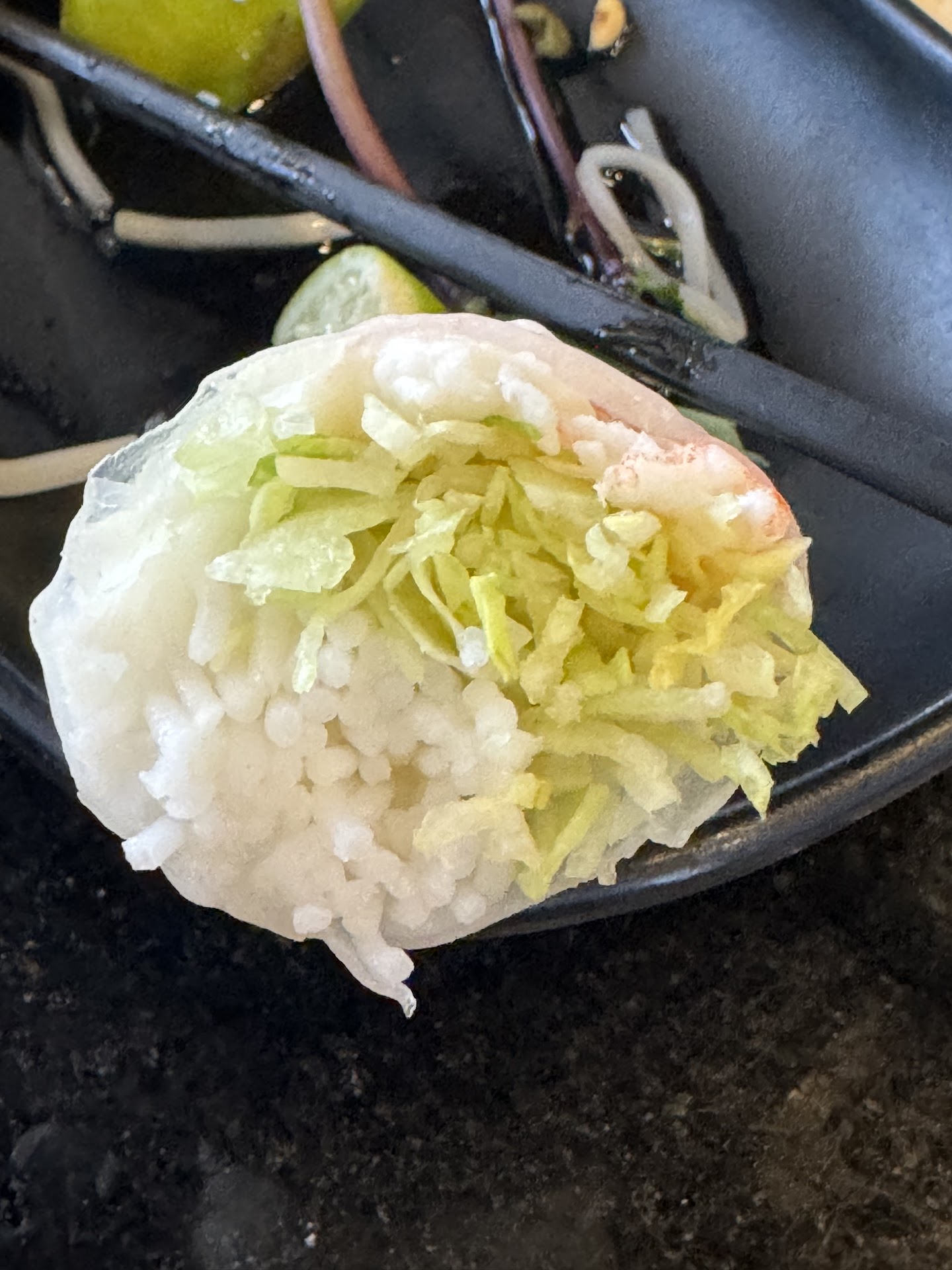 Two of us stopped by for a late lunch after a good hike at Castlewood Canyon State Park. We started with spring roll appetizers and agreed that the peanut sauce was the best we’ve had to go with perfect spring rolls.