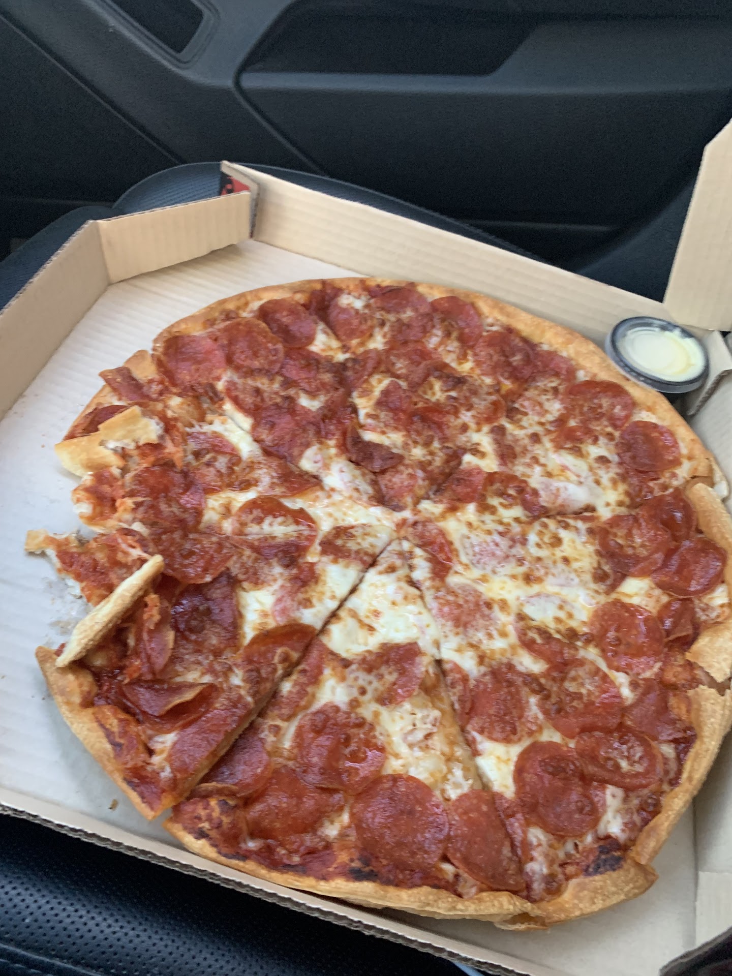 I have not had Pizza Hut in years so this review perhaps is biased because I was really delighted to get to eat it again. Since I moved away from a location it just doesn't make sense to get it because it will be cold by the time we get home. I have considered getting on road trips a few times as well and it always seems to be a closed location or too big of a line or something so I ended up skipping it every time I had the chance until the other day. We decided to stop by this location in Castle Rock and just eat in the parking lot so that we didn't have to deal with the long drive home and eat it cold. There's one parking spot nearby with shade so we were just chilling over there. It didn't take long at all I think about 10 minutes. Then we were able to grab our food from the pickup drive-thru which was convenient. And they even had paper plates to offer us so that was super awesome since we were eating in the car. And that would be great on a trip as well. As for the food it was just as I remembered it. We got personal pan pizzas and breadsticks I got a double order of breadsticks because it had been so long since I had had it I really wanted to make sure I had some leftovers haha. It was really delicious the only thing missing was parmesan packets I should have asked for some. That would have been nice on the sauce. Anyway I highly recommend this Pizza Hut especially if you're just stopping by for a personal pan pizza and breadsticks for lunch. I really enjoyed this meal. And I haven't been eating much this past week because of a tragedy so it was nice to have a meal that I...