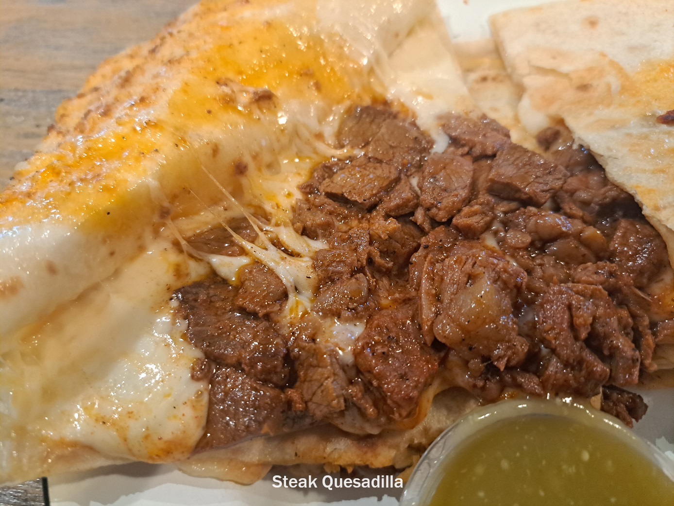 I will admit, the steak quesadilla was different from others I have had but it was just ok. The steak wasn't dry like a lot of restaurants make it which is a plus but it had a lot of extra wetness. It was almost like birria and had a weird taste (almost too rich). It wasn't horrific but was not my cup of tea. It was also $15 and came with the cheap generic green salsa. Very overpriced for what they are serving.