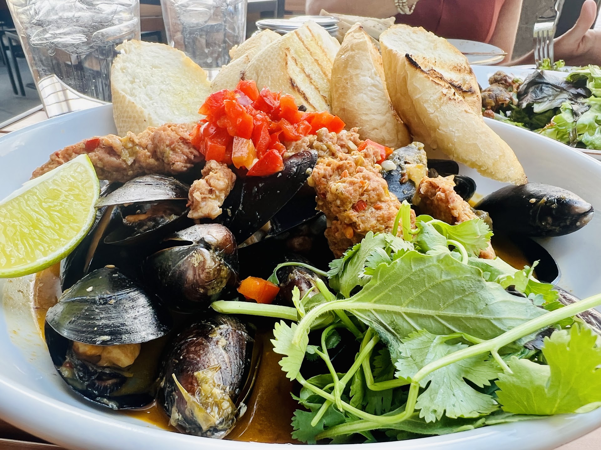 The shiitake mushrooms were good and had a great smokey flavor with the touch of spice from the sriracha sauce. The mussels and chorizo is hearty as an entree with generous portions of chorizo in the dish. I will say the black and blue burger lacked flavor but the rosemary truffle fries made up for it. I still haven't tried the veggie sandwich but it looks tempting.