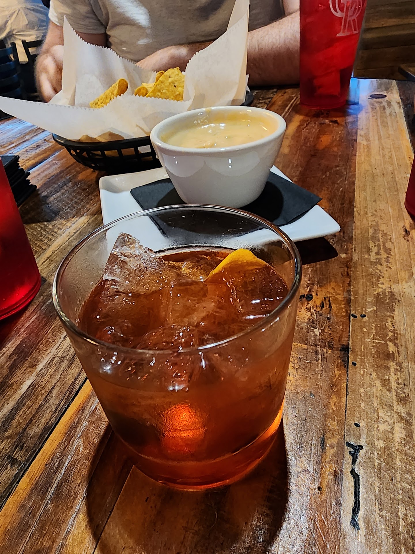 Drinks: The Old Fashioned was mediocre and as good as I can get in most other places. My wife got the smoked Old Fashioned, and we both agree there was zero flavor difference between the two. My biggest gripe on this is that it's called Whiskey Lodge yet doesn't have a proper set up for whiskey! The ice cubes are small, traditional shapes like we expect in sodas. They melt within minutes. Why isn't there (at least) sphere shaped ice for my drink? The glasses themselves held no weight. Again, at a normal bar, that's fine. At a place called WHISKEY Lodge, I expect it to be set up for a great whiskey experience.