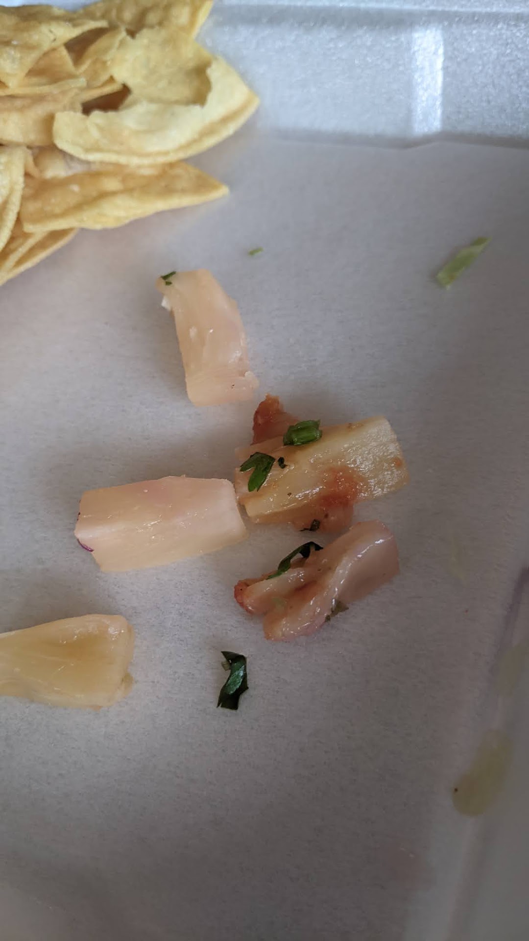 Fast forward to when we actually started eating the food at our house, just 5 minutes away), and my husband's tacos were COLD! The meat was not even warm at all, as if it had not even been heated before putting it in the taco! I had the fish, and it was rubbery & overcooked...hopefully not expired either! The "side" of beans that each of us ordered for almost $1.50 each came in a teeny little to-go plastic SAUCE container, and tasted like it came from a can. And the worst part of the fish taco meal were the HORRIBLY expired pineapples that were in the tacos! They were so old that they were almost GRAY in color! I took pics to post with the reviews. I took as many as I could find (and had not accidentally eaten already) out, so as not to have stomach issues later (fingers crossed). All and all, this was a total waste of our money, waste of our time, and a big disappointment, given the much better experiences we've had in the past, and our friends' good recommendation. We will let them know of our experience as well, so they can keep their "eyes open" if they visit again.