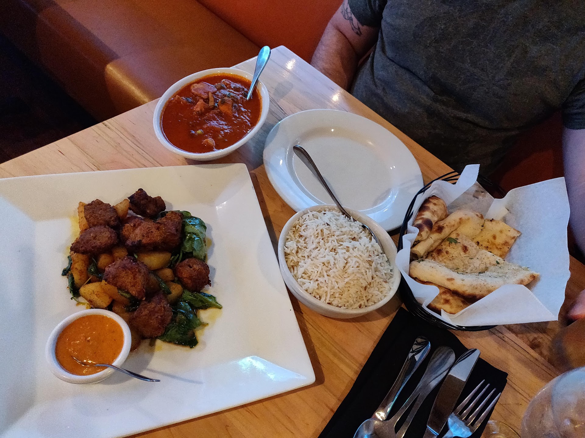 I got 4/5 stars and it was decently spicy. I like spicy and next time I'm getting 5 stars! The spice was very good, it didn't just hit you right away, it took a while to show itsself. The flavors are very complex and pair very well together. I need to get myself an Indian cuisine cookbook and start learning how to make some curries like this. The basmati rice had cumin seeds in it which really gave the basmati an amazing flavor. I will be doing this with my basmati now. The naan was very good as well. All three of us ordered the malbec, which was the second best malbec I've had before. Overall the flavors were really great.