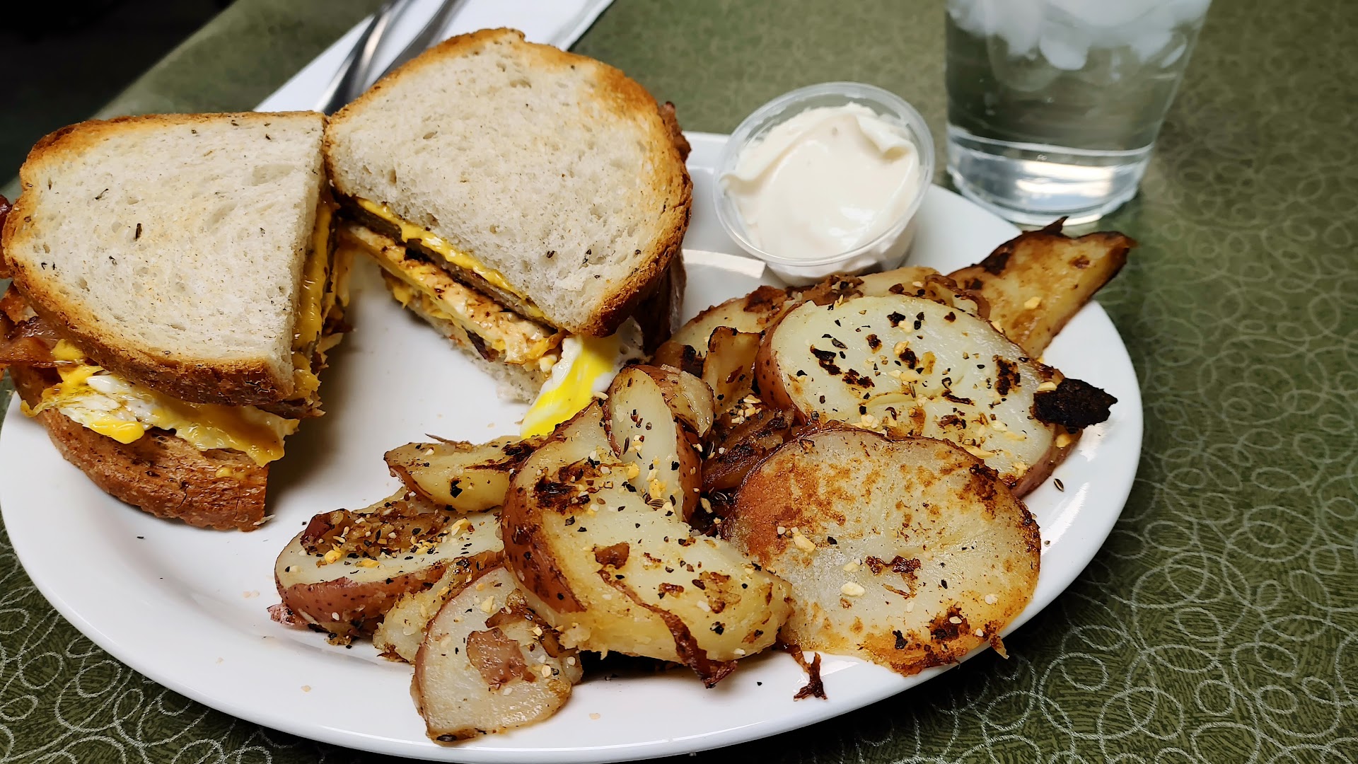They had the best bacon, egg cheese Croissant I ever had! Also ordered side of home fries (portion of potatoes was small compared to other places and also is a la carte which seemed strange to me) You stand in line to order your food which felt a bit awkward (felt kind of like a cafeteria) I’m not sure how elderly customers navigate this if they have a hard time walking or standing. They bring your food to your table then you clean up your own table after you finish. The booth I sat in was broken underneath. The owner and staff both checked on us and were very friendly! Maybe in the future they can get those table kiosks where you can place your order electronically (like what they have on the table at Olive Garden) so that breakfast can be more relaxing and you can enjoy your family and friends more. Next time I’ll know to order more food since I was still hungry. The most important thing is that the food...