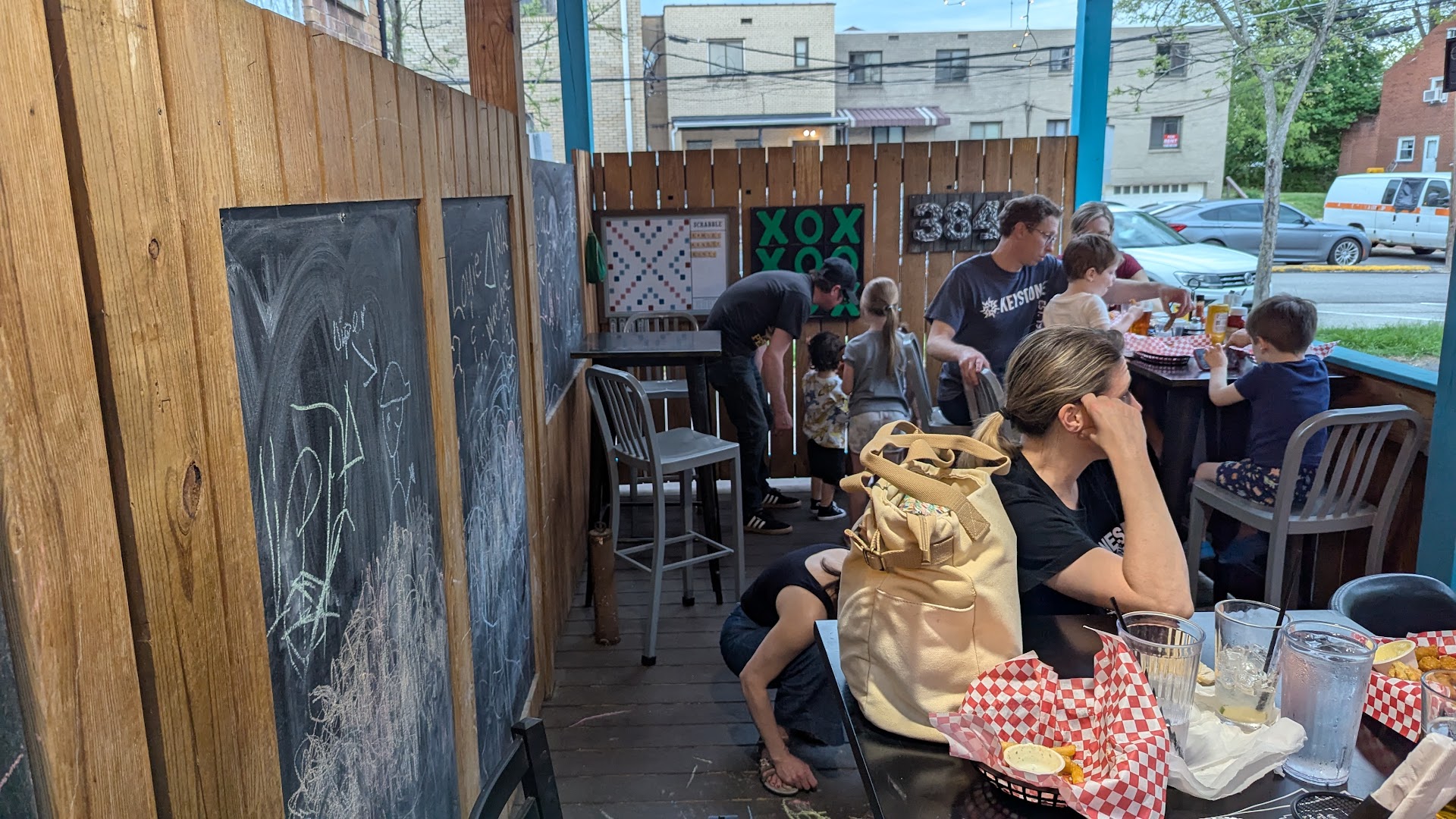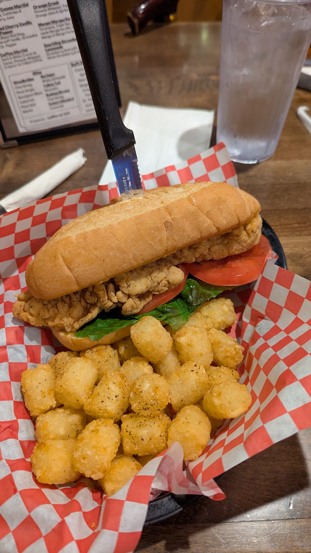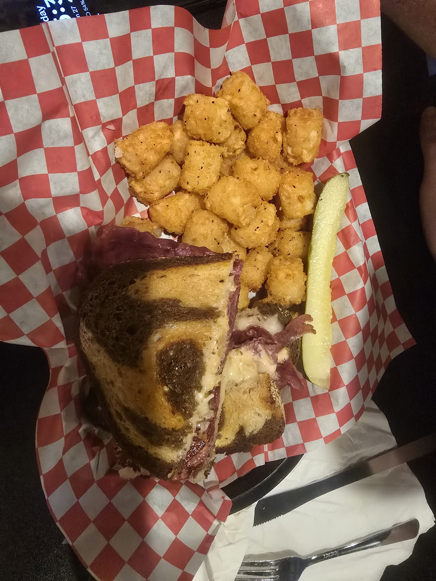We had a fish sandwich with tater tots and a burger with fries. Both sandwiches were okay/good and the fries were good, but the tater tots were overcooked and too crunchy. Their food menu is only two pages long - So as long as you want limited typical bar-type food you'll probably satisfied. But if you want any type of food beyond that, you'll be disappointed. Our waitress was friendly and attentive. after seeing the 4.8 rating, I'm confused... Are the other bar-type eateries in the area that much worse?