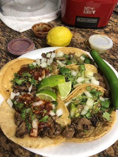 This place is a little hole in the wall that you would pass by over and over again without noticing, atleast I did. I came here for lunch and got lucky to find out that Tuesdays is $1 tacos! When you first walk in its a little bit of a tight squeeze. Just a few tables. I ordered 10 of thier $1 tacos and a coke and my girl ordered a super steak burrito. They ask if you want your tacos picante or not, I said picante and oh boy are they. I was sweating and my mouth was burning, personally a little too hot. It took some of the flavor away for me, I found myself adding more salt than usual. For $1 tacos I thought they were very good overall. Next time I think I will go with no picante. I'm finding it harder and harder to find $1 tacos anymore. My girls steak burrito was pretty good as well. A good balance of juicy steak, cheesy goodness and seasoning. Customer service was just above mediocre but I can look past that since they have $1 tacos. The regular steak and the $1 taco steak was both flavorful and lean. I personally don't like finding chunks of fat in my meat. This hole in the wall is definitely...