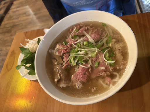 Pleasantly surprised by this gem hidden in the Public Market. Place was a bit crowded and it got more crowded by the time I left. Thankfully, I didn’t have to wait long. First thing that popped out were the metal chopsticks. What? Not the usual plastic ones? And then the ketchup. I guess people use it. Food. Came out looking standard. The broth was ok. I thought it lacked depth and complexity, but it was a very clean, solid broth I’ll take any day. Noodles were a bit too done for my taste. What truly shined were the meats. Though the tripe and meatballs were just standard, everything else was solid. The tendon was neither too soft nor too hard. The fatty flank was beefy. I enjoyed it quite a lot. Most pho places get a standard 4 star for me, but even with slightly higher prices than I’m accustomed to, this place gets a 5. Obviously, I only had their pho so can’t speak to anything else. But usually if the pho is good, everything else is good too. But I’m going to a pho place tog...