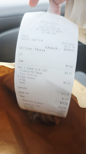 Was so happy when this place opened up so We didnt have to go all the way down by the 1604 anymore. But, it hasnt been the best experience so far. Everyone for the most part has been relatively nice and polite. But they almost always screw up the order. They either forget something or mess something up. At first it was dry brisket with ends when we ask for no ends. Then it was pickles on the chicken sandwich, many times in a row. They started making the sandwhich right but forgetting the ranch, or the extra order of fries. So i started going inside instead of the drive-through to watch so i could remind them or catch it before leaving. I dont like checking the food in the car due to their excessive packaging process, so inside we go. Went a few days ago. I watched the young lady prepping the brisket touch her face and her hair then continue touching food without changing gloves. I told the manager. I told him not to worry about remaking it but he should say something. I didnt want to cause a lot of problems for anyone, But it should be addressed and fixed. We're cool no worries. And guess what, they forgot the extra fries again. I took the L, whatever.