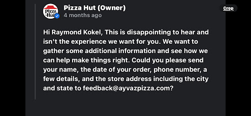 7/29/22 - Very Disappointing for all 4 Pizzas! We ordered a Supreme, 2 Pepperoni, and One 3 meat Large Pizzas (thin & crispy and hand tossed) to feed our family of 7. There was something "Off" about the Pizza Dough. It had an unpleasant sweet taste, it was heavy, doughy and it ruined the overall meal we were looking forward to enjoying. When our 2 grandkids who Love Pepperoni Pizza, took only one bite each and both said, "I don't like it. It tastes funny." They then asked for cereal instead. We go out of our way to support our Castroville PizzaHut as it is the only one in town. We ended up throwing away 2 large pizzas worth of combined slices and had to come up with something else for supper. We may need to go as far as Potranco Rd/1604 (about 16 miles vs 1 mile)to get our PizzaHut Fix. They had to know something was wrong with the dough (it even had an off smell) and yet they still served it to Anyone who ordered pizzas for Friday Evening. Poor Quality Control. I've known the Family who owns Many of the PizzaHuts in San Antonio for decades! I know their restaurants strive for high quality food preparation and service. I will be cautious if and when i order from the Castroville PizzaHut in the future as you should do the...